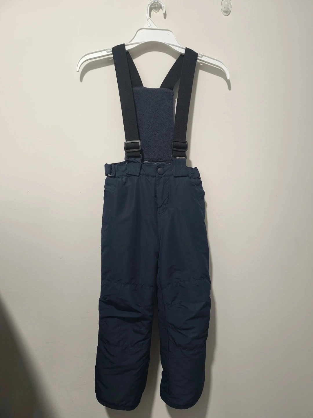 Navy blue snow bibs for kids. Made with durable material to keep warm. Size is 5.