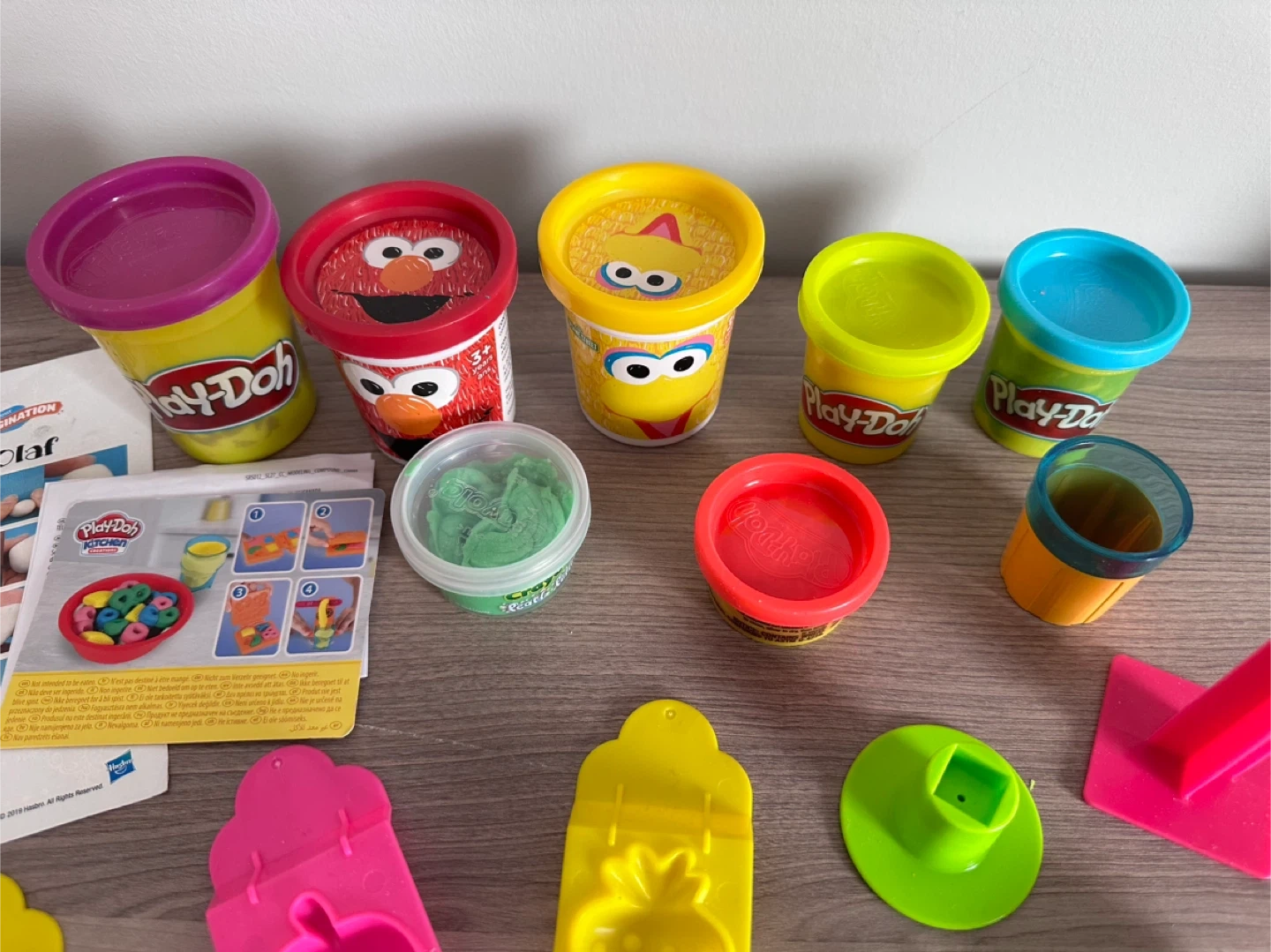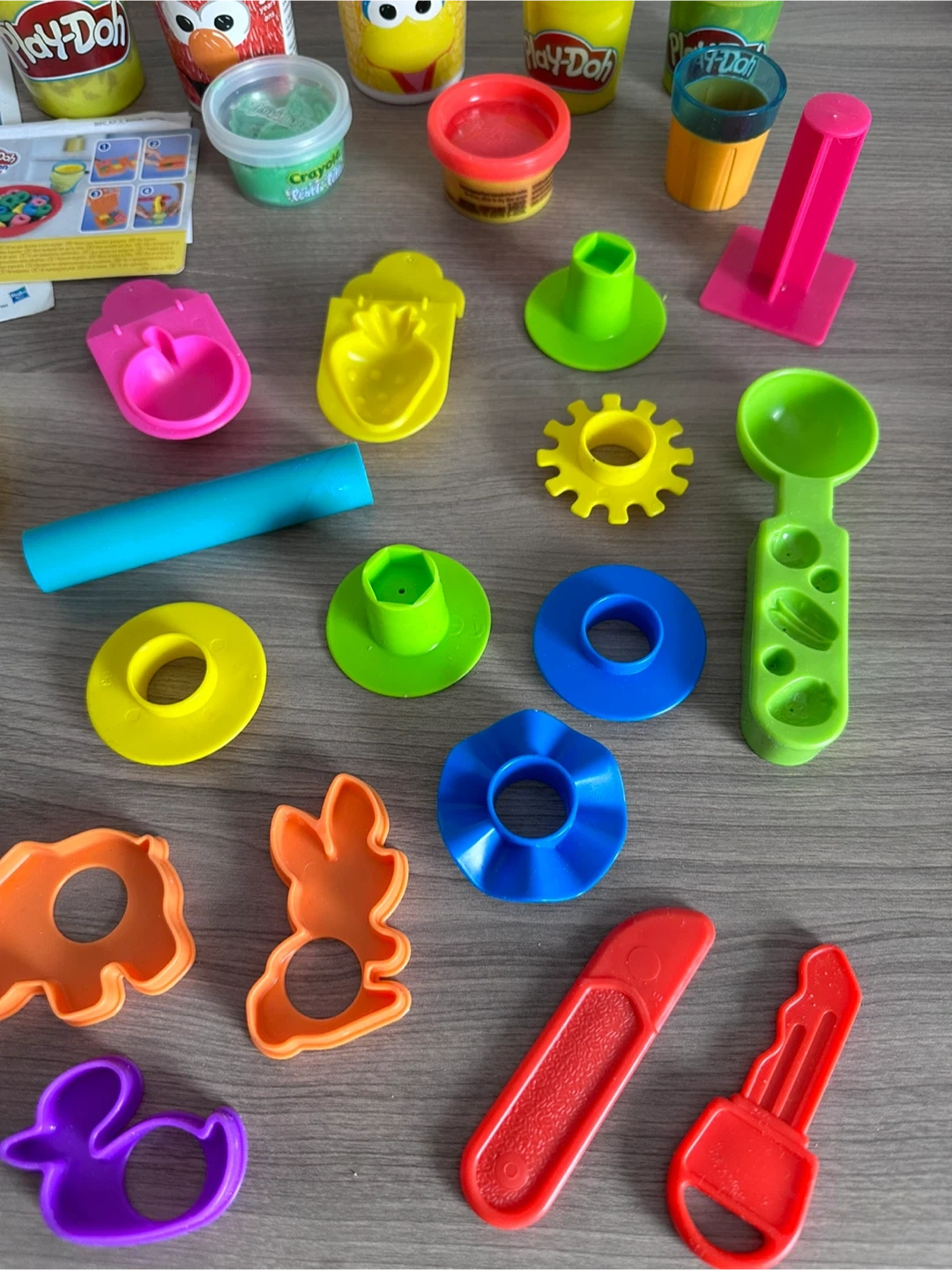 Used Play-Doh set includes several tubs of colourful dough and various shaping tools. It comes with cutters shaped like animals and characters, plus extruders and stamps. Perfect for imaginative fun and creative building projects!