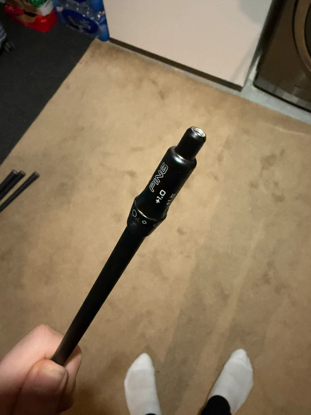 This is a PING Alta CB 55 SR driver shaft. It has a Golf Pride grip. The shaft has a PING adapter to change loft degree.