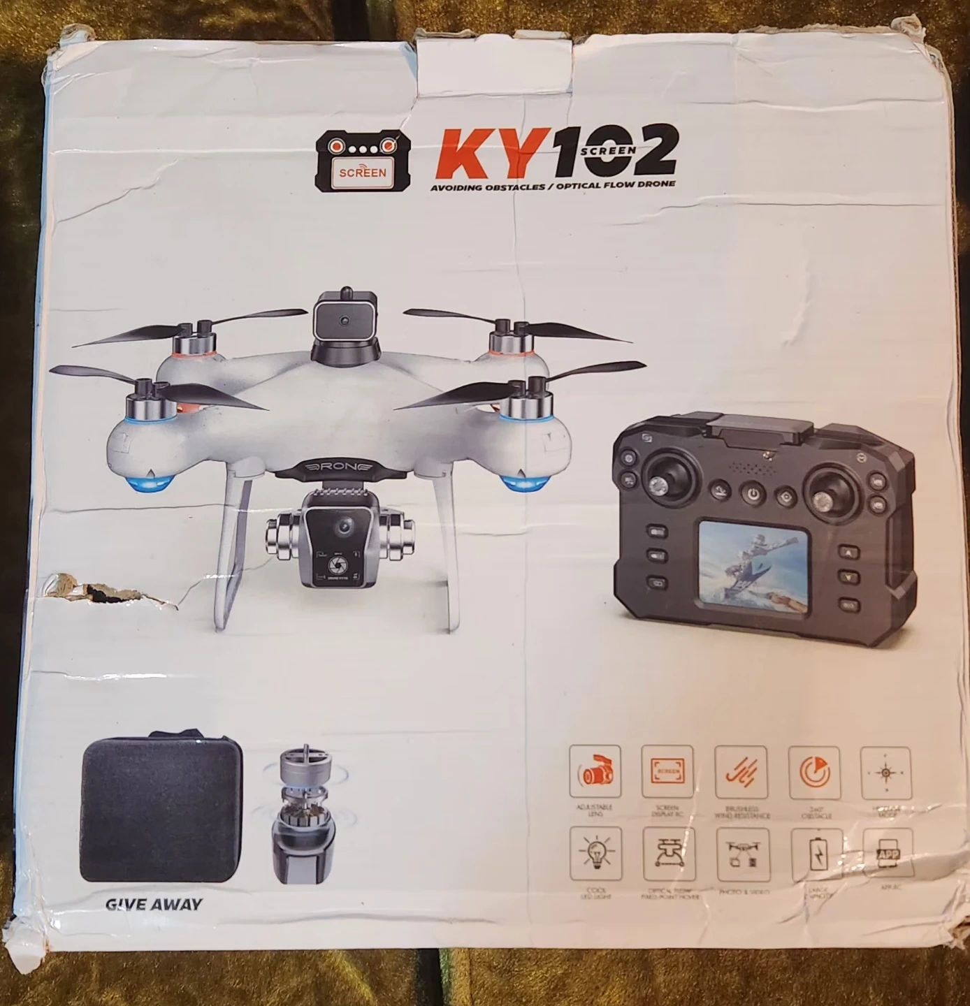 This is a KY102 drone with optical flow and obstacle avoidance. It features a screen display RC for control. The drone is capable of photo and video recording.