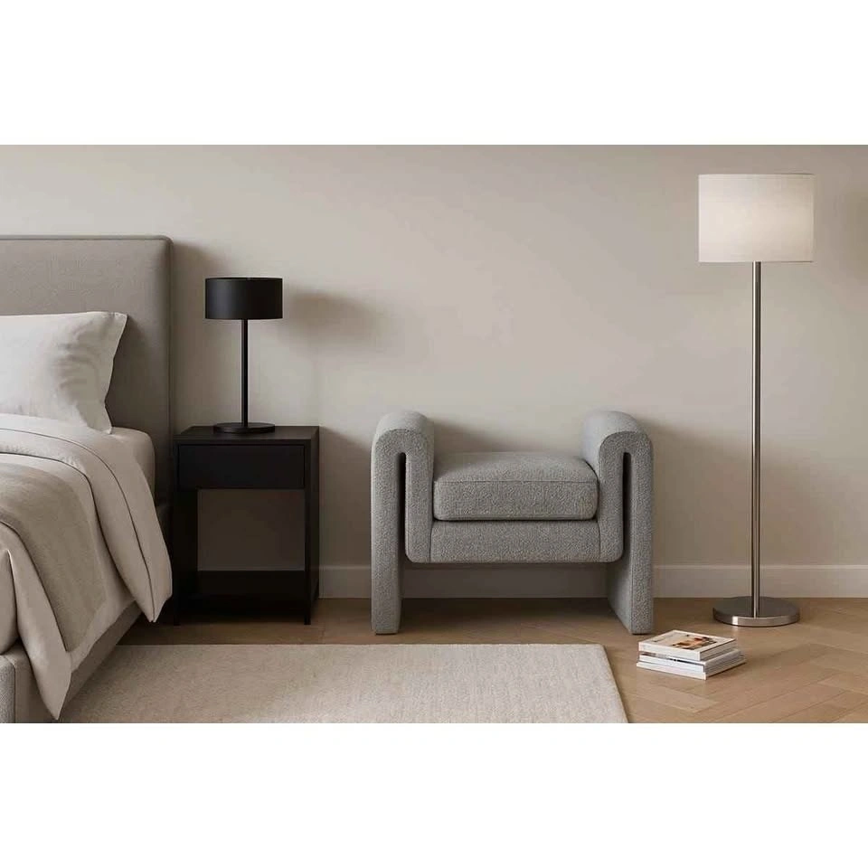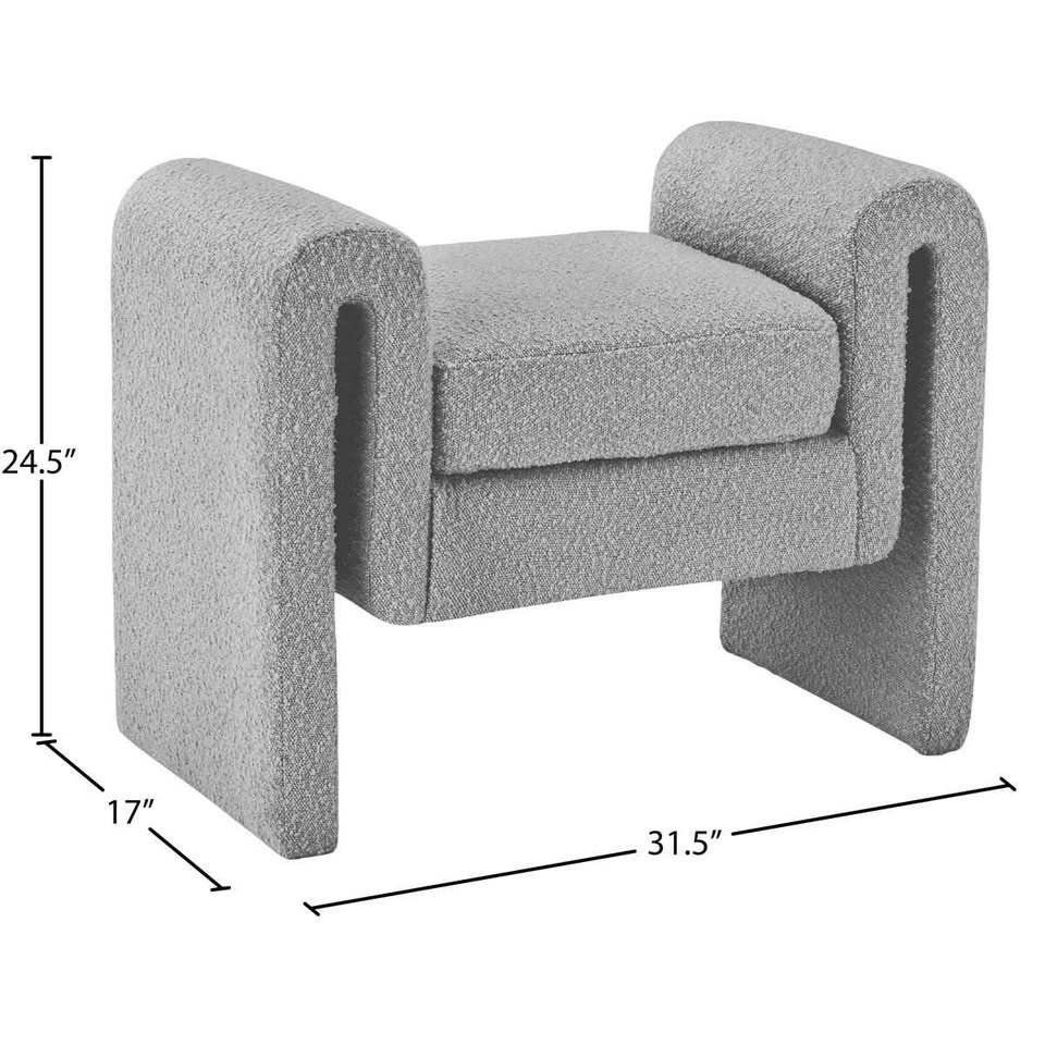 Give your home a contemporary touch with this bouclé fabric bench. Featuring a unique design upholstered in a rich bouclé fabric, this bench is as stylish as it is comfortable. The curved armrests provide a place to rest your arms, preventing fatigue when you sit down to watch TV or read a book. This beautiful bench is the perfect addition to any modern living space.