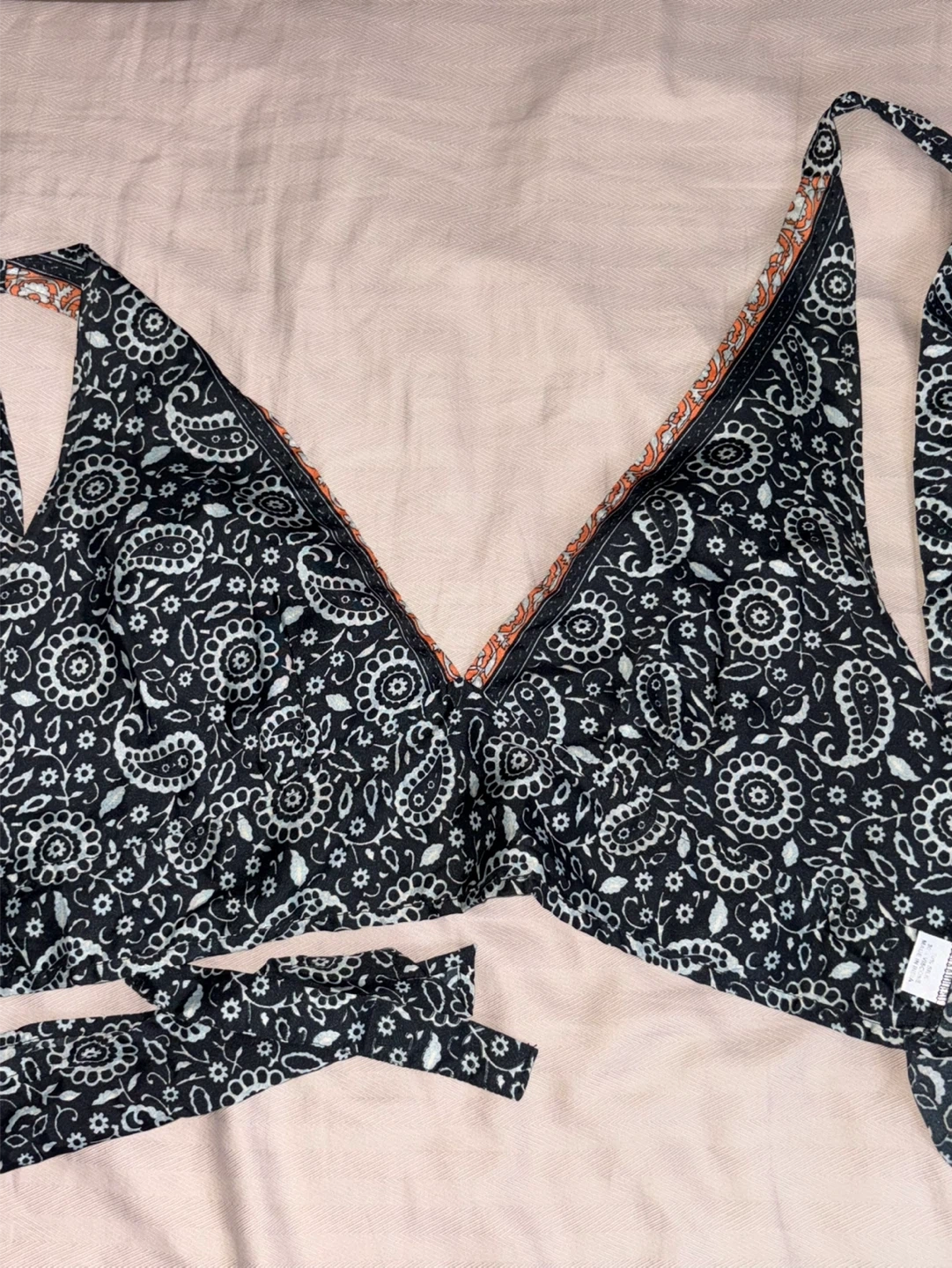 Selling a lot of three women's tops. Included are two halter tops with unique patterns and a white tie-up crop top.