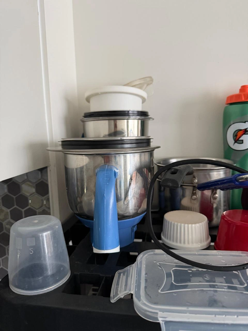 • 3 stainless steel jars (wet, dry, chutney)