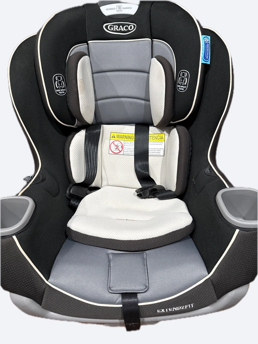 A great car seat for keeping your child safe and sound. Black and gray car seat. Features cup holders on both sides. The harness has a ten-point system.