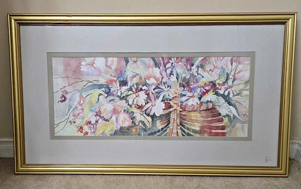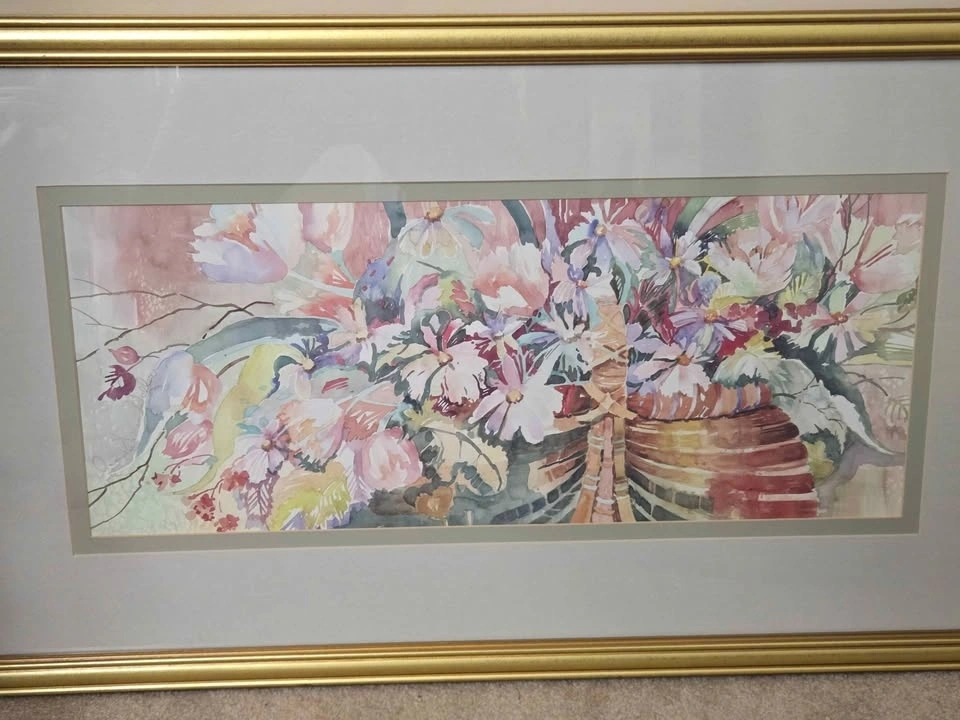 Jo Ann Williams Walker is a talented American impressionist painter known for her vibrant and exuberant works of art. Her use of color and light transforms ordinary images into extraordinary ones. Walker's artistic style has evolved over the years, with her brushwork becoming more confident and self-assured. This is evident in her freer and stronger compositions, which are a hallmark of her artistic approach. Walker's still life compositions are particularly noteworthy, with their haphazard yet perfect arrangements. Overall, Walker's art is a testament to her passion for life and her ability to find beauty in the world around her. Measures 17 x 22 inches. Available for pick up in Oakville near Dorval Drive and the QEW.