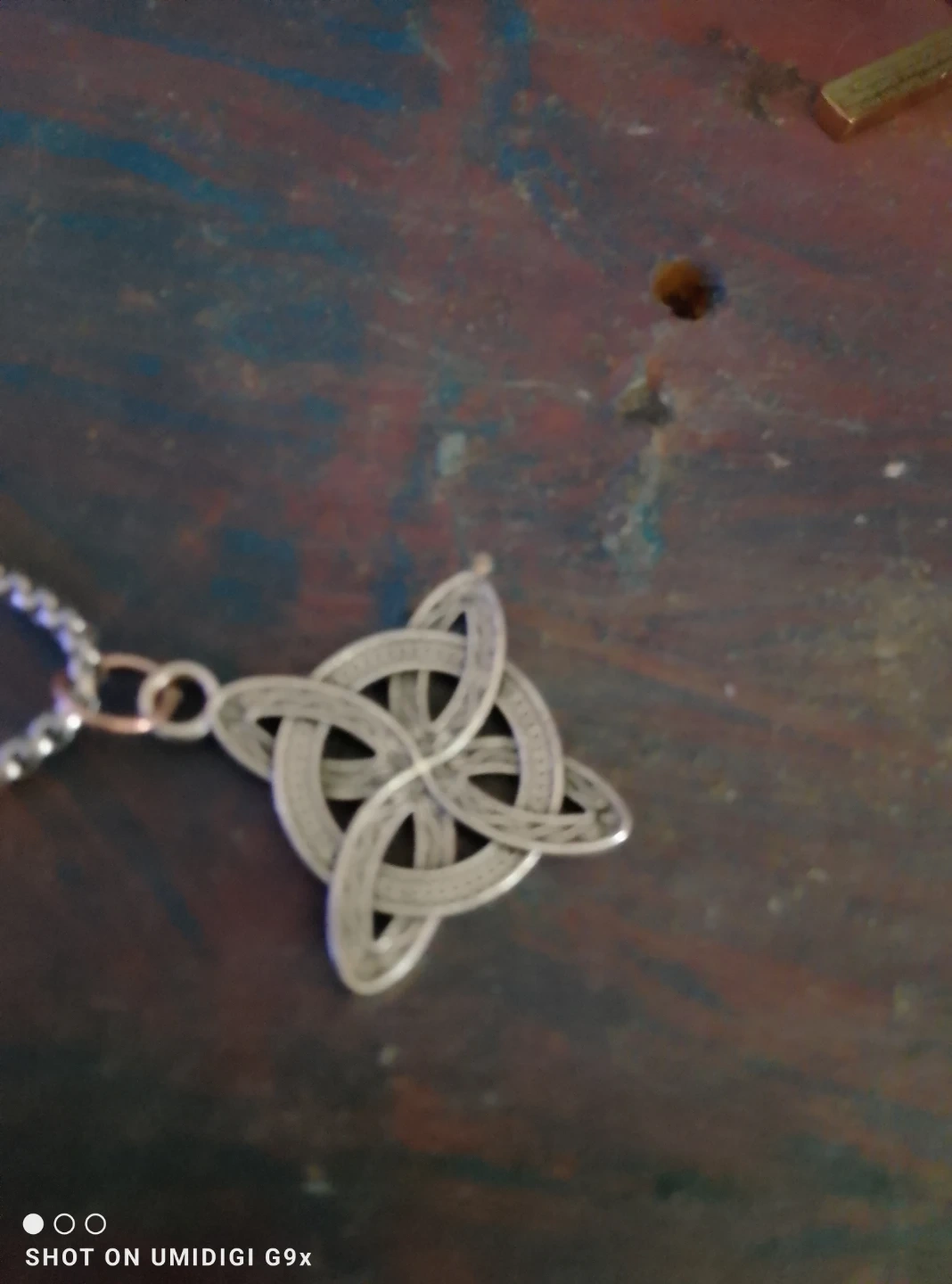 This pendant necklace features a detailed Celtic knot design. It's crafted from a silver-toned metal and includes a chain. A timeless piece for any jewellery collection!