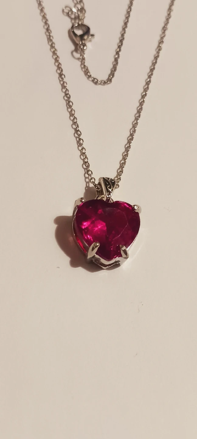 A silver-tone necklace with a red ❤️ heart ❤️ shaped pendant. The chain features a standard clasp closure. It's a lovely accessory for everyday wear or special occasions!!! Great VALENTINE'S DAY GIFT 🎁 20" long. New !! ALL MY PRICES ARE NEGOTIABLE !!