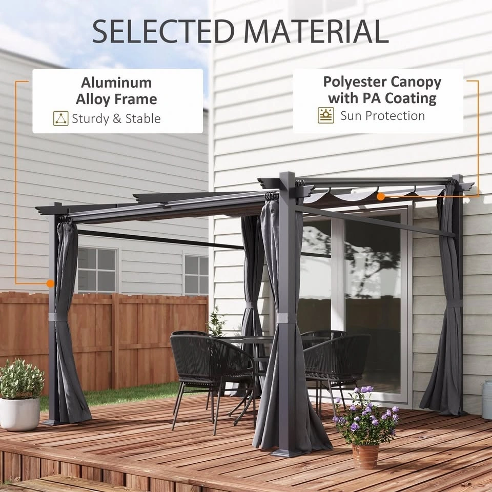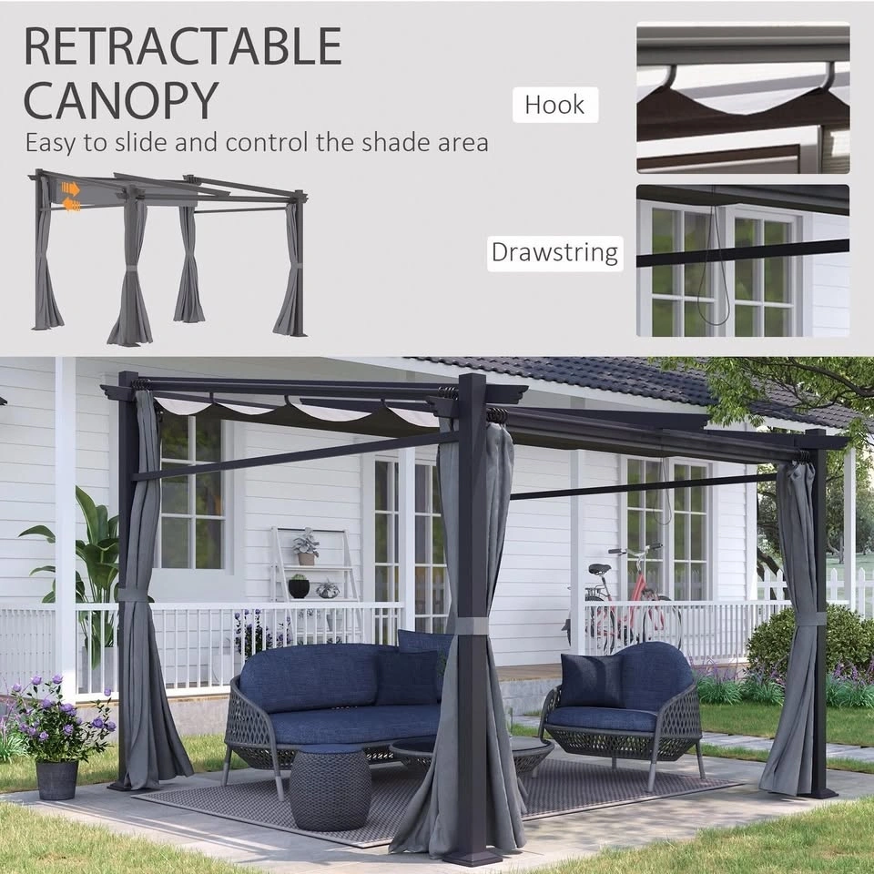 Outsunny 10′ x 10′ Metal Pergola with Sliding Roof Canopy
