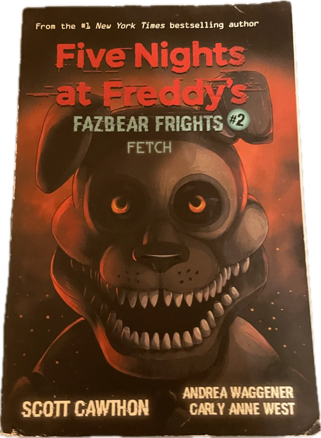 Selling Five Nights at Freddy's: Fazbear Frights #2, titled Fetch. It's written by Scott Cawthon, Andrea Waggener, and Carly Anne West. Slightly worn down