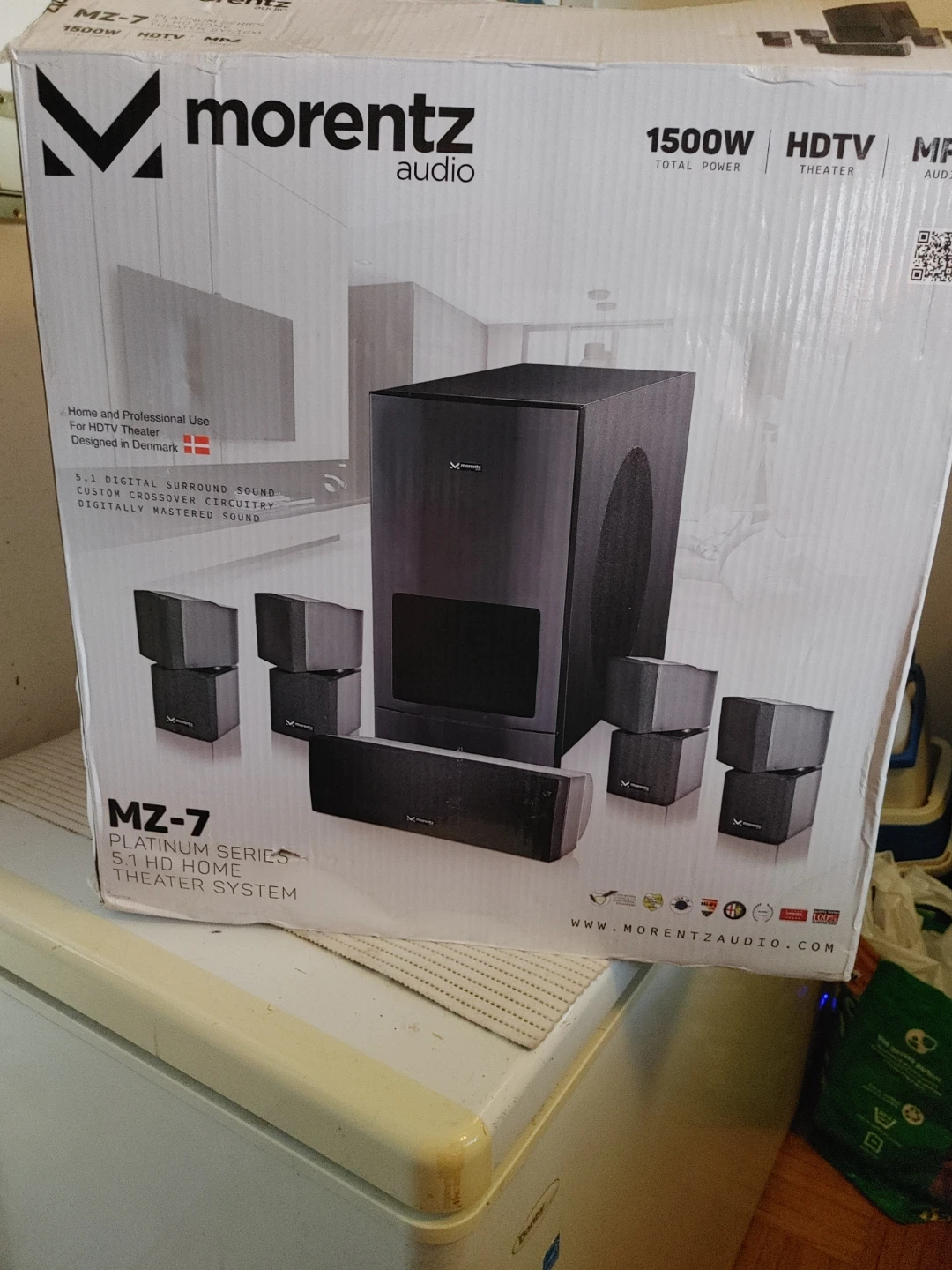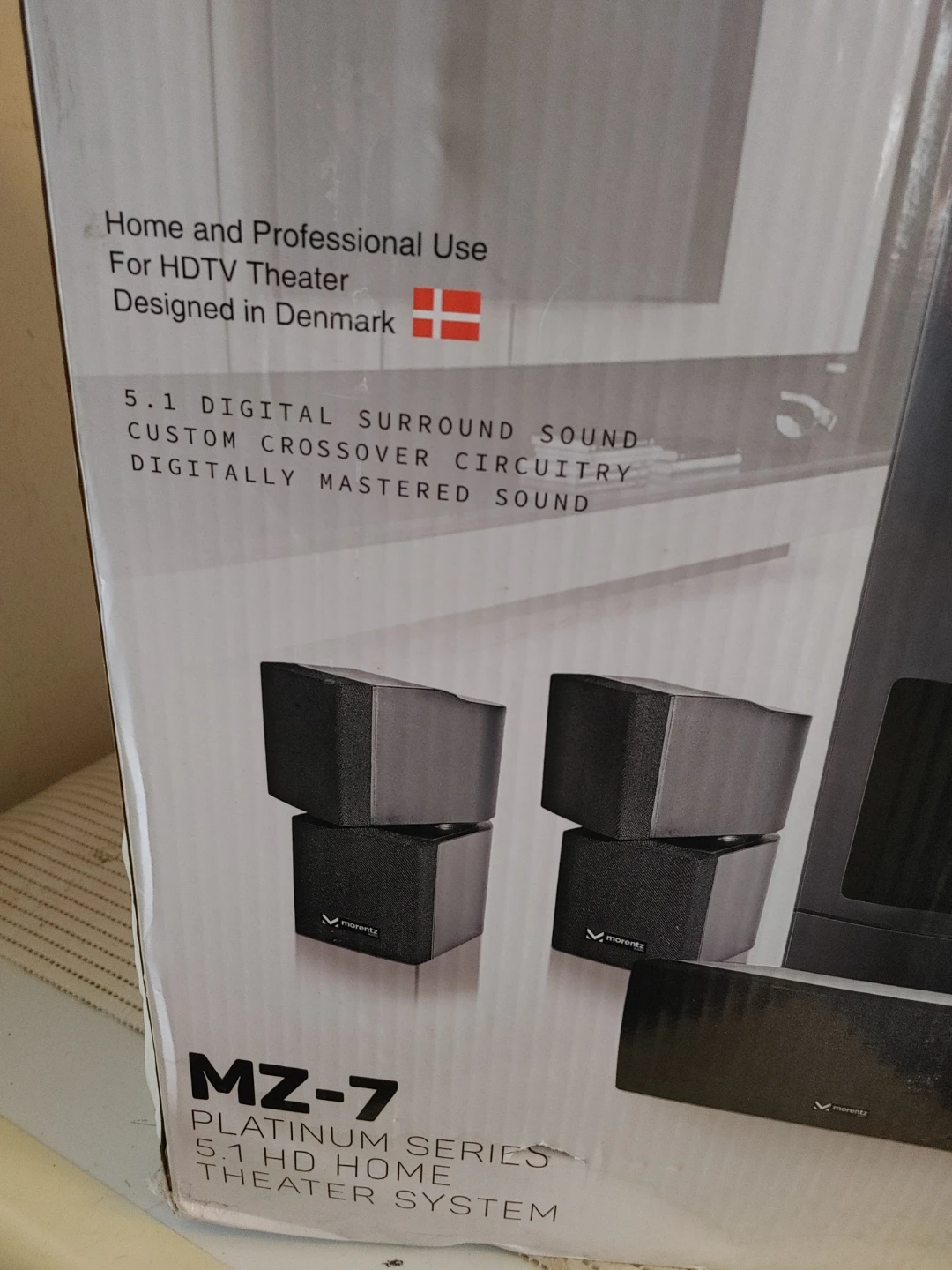 This Morentz Audio MZ-7 home theater system delivers 5.1 digital surround sound. It's designed for HDTV and features custom crossover circuitry. Experience digitally mastered sound!