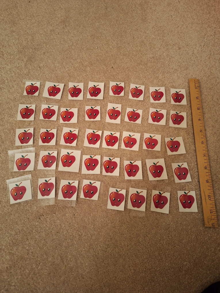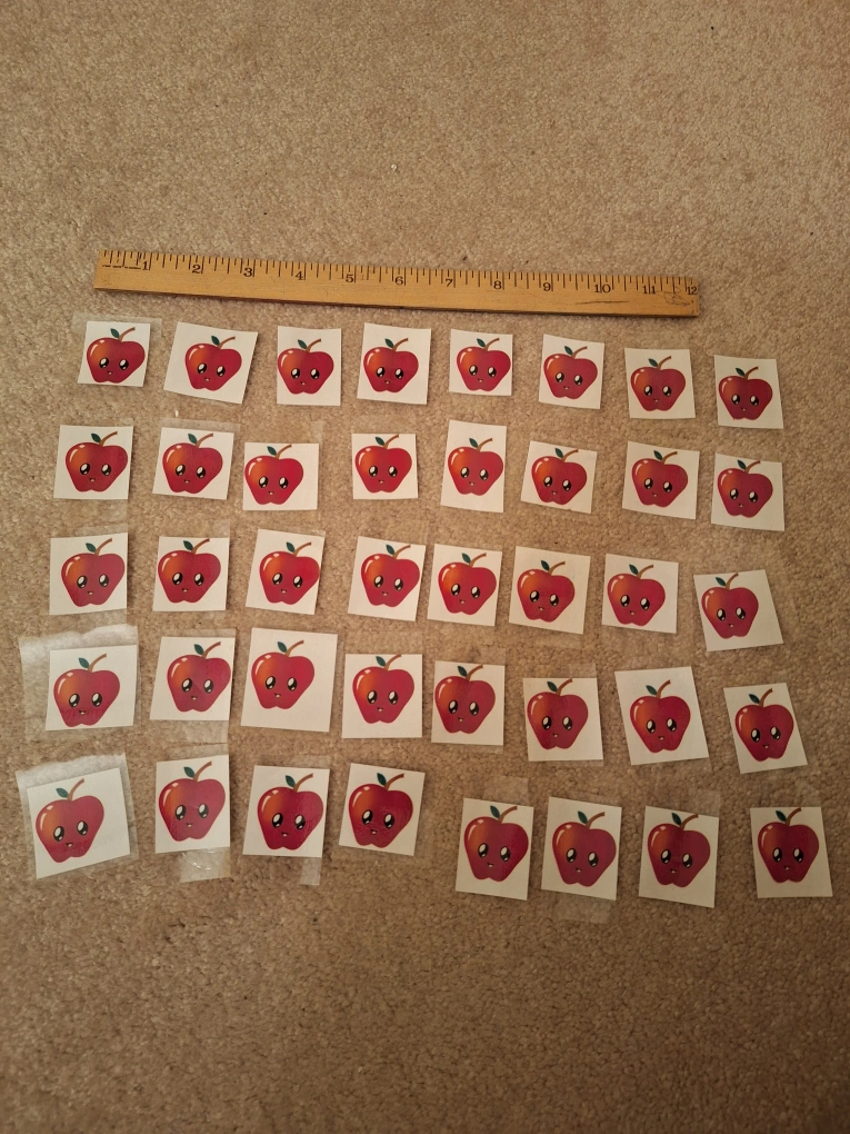 Set of 40 colourful apple cards. Already laminated and ready to use with children on a classroom calendar or for counting games. In excellent condition.