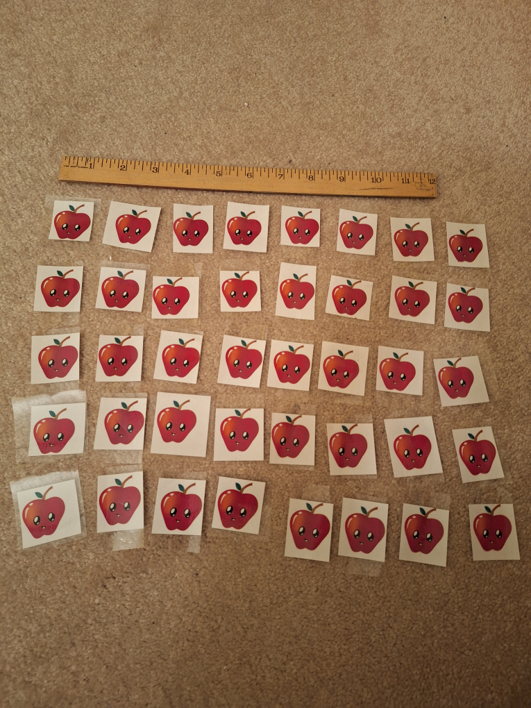 Set of 40 colourful apple cards. Already laminated and ready to use with children on a classroom calendar or for counting games. In excellent condition.