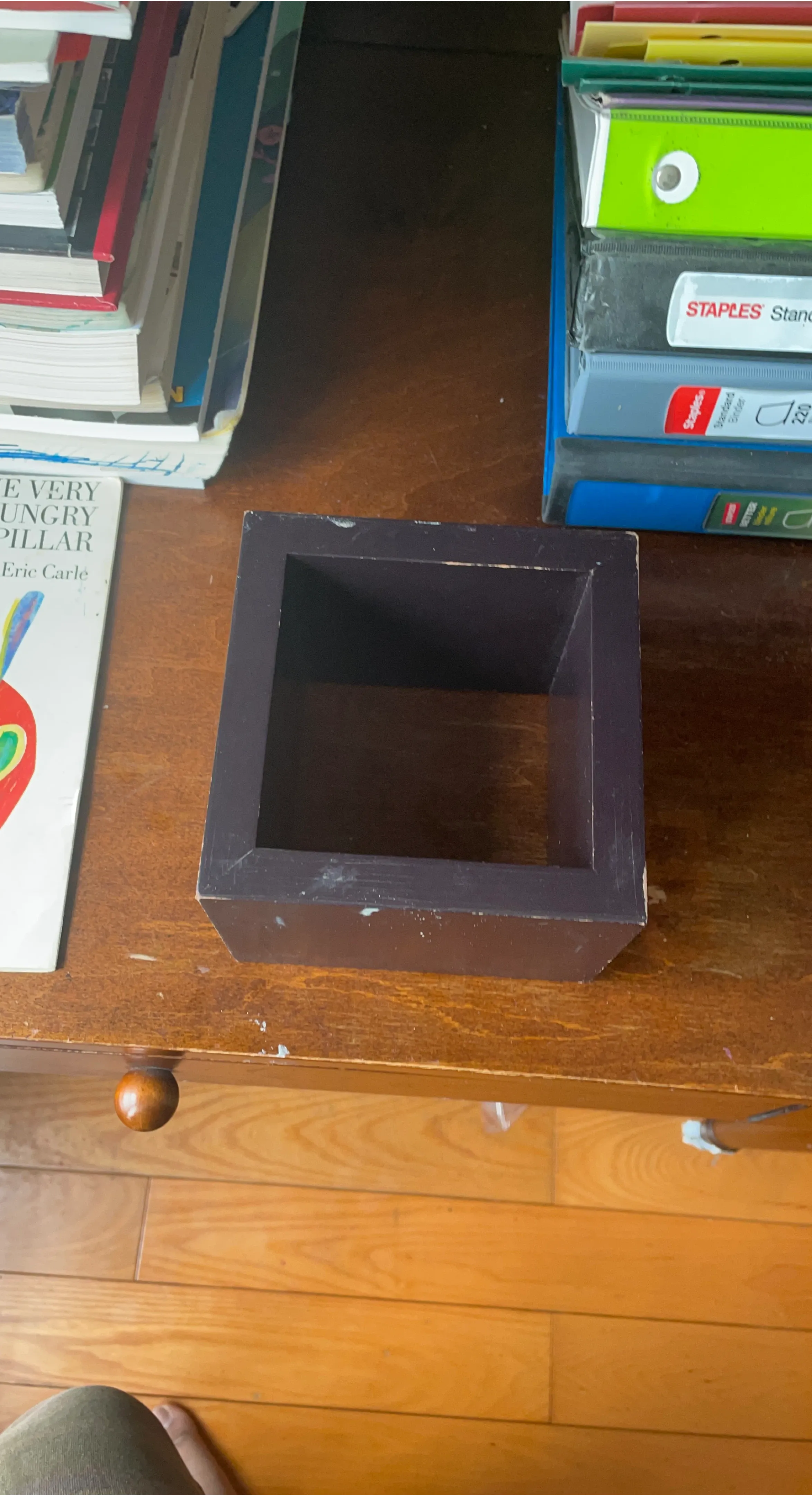 A small dark brown display shelf by Melannco. It's made in China and features mounting holes on the back. Perfect for displaying small decorative items!