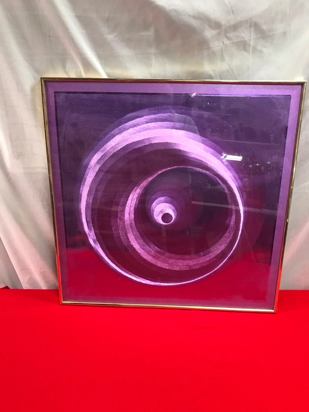 Selling a framed piece of art titled "Poster Magic" by Manifestations Gallery. It features a captivating optical illusion design in shades of purple and white. A unique addition to any home or office! 24” x 24”