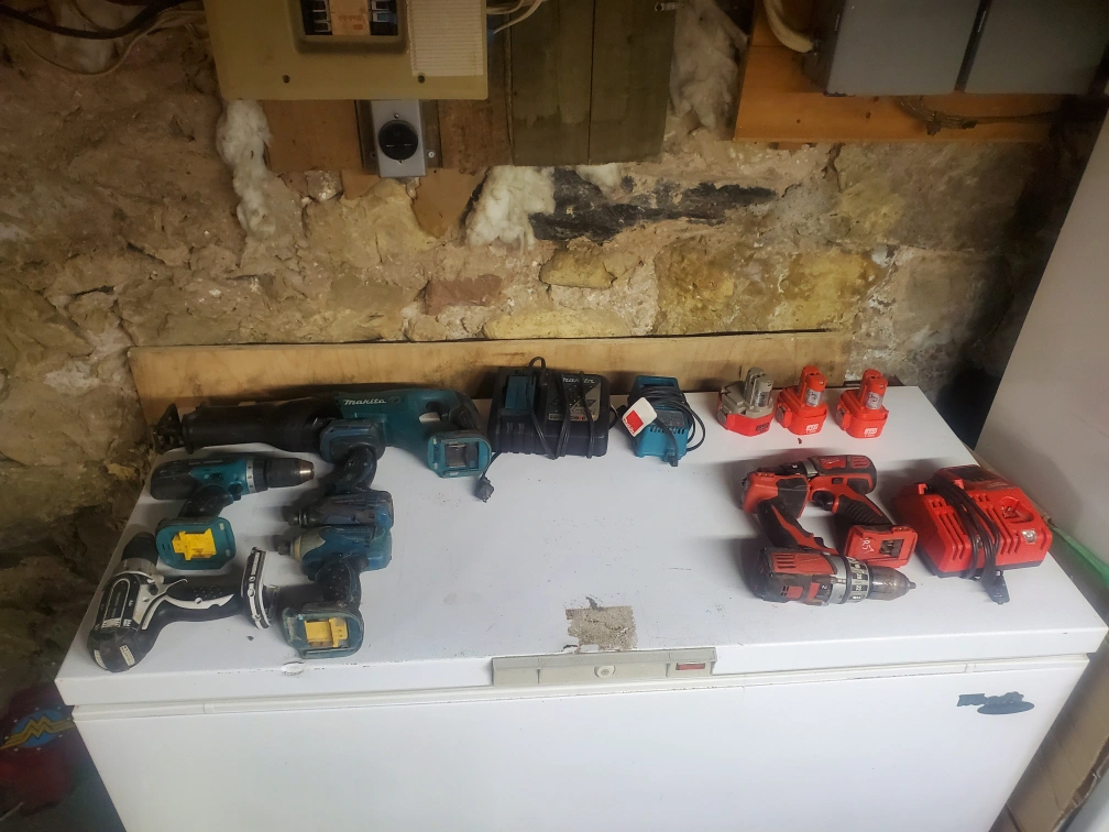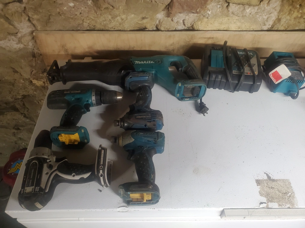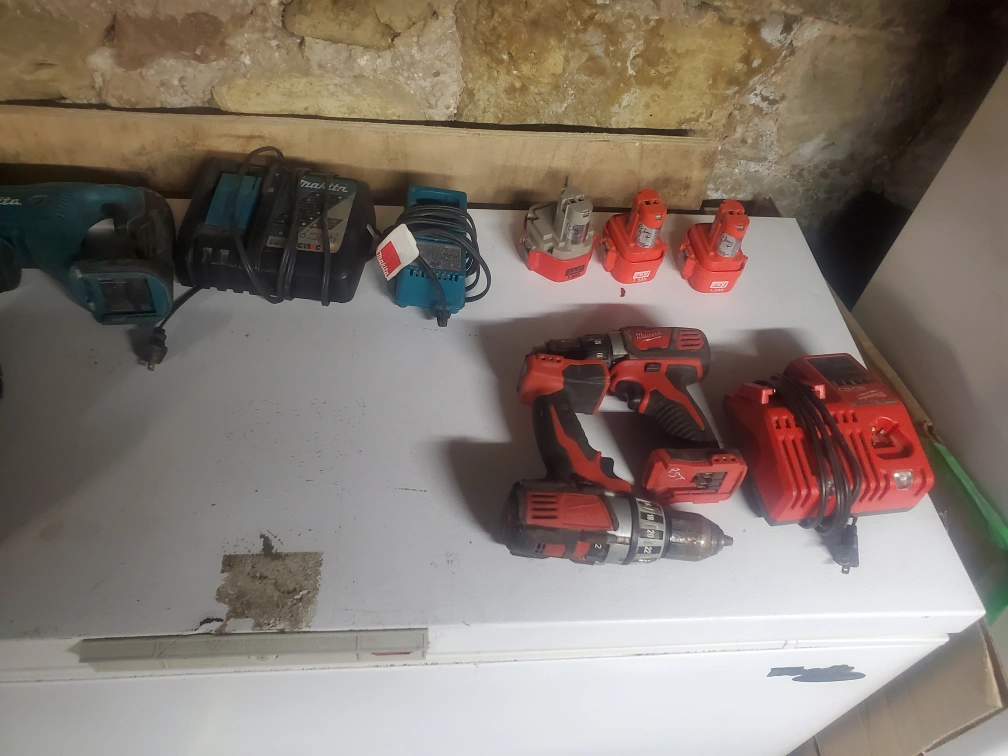 Collection of cordless power tools. Includes Milwaukee and Makita drills, impact drivers, reciprocating saw. Various batteries and chargers included. Sold as is.18v and14.4 makita batteries. $300 for the lot of them o.b.o