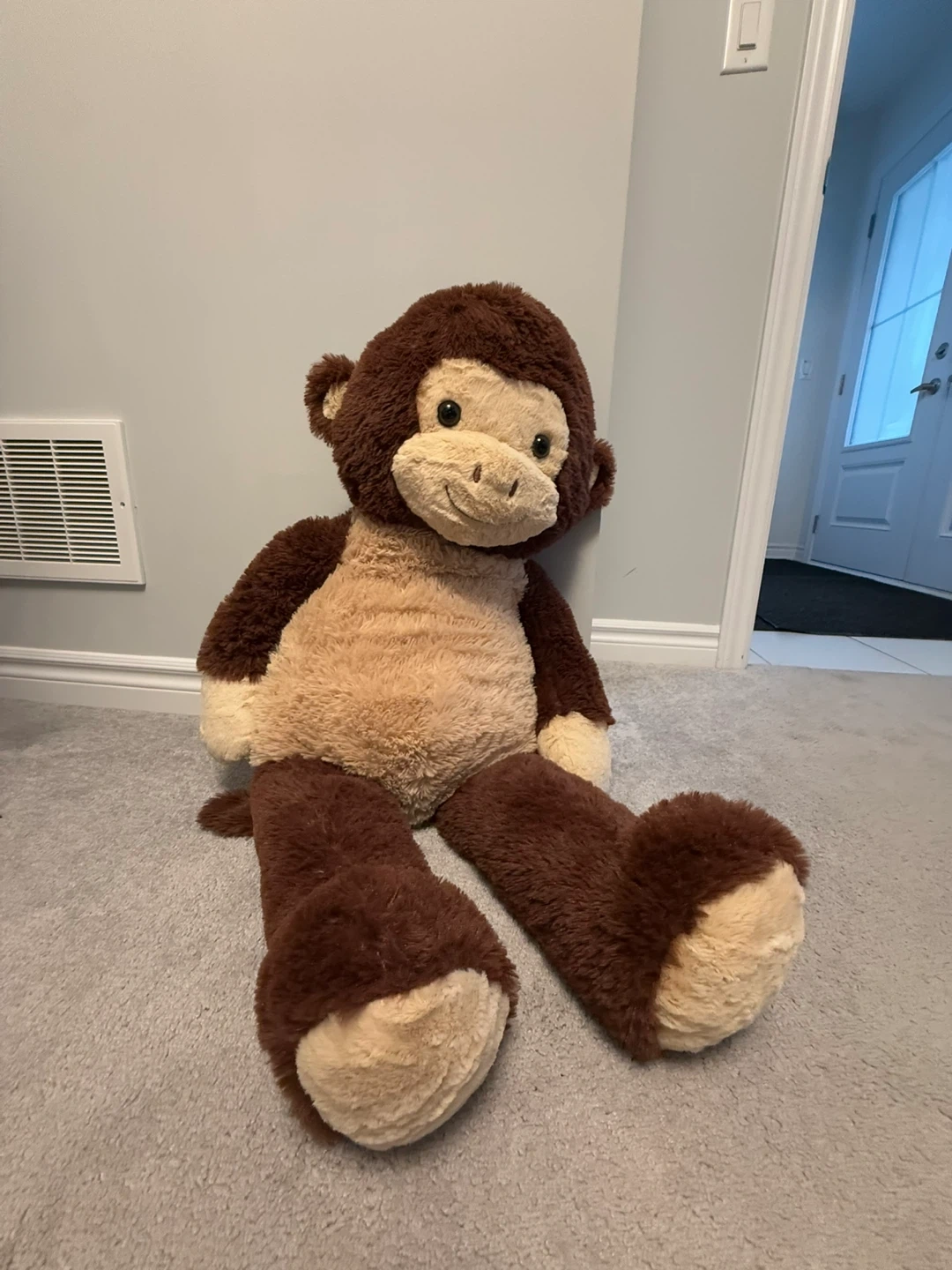 Selling a large and cuddly plush monkey stuffed animal! It's in great condition and ready for a new home. Perfect for kids or anyone who loves a soft, huggable friend. This monkey is sure to bring a smile to your face