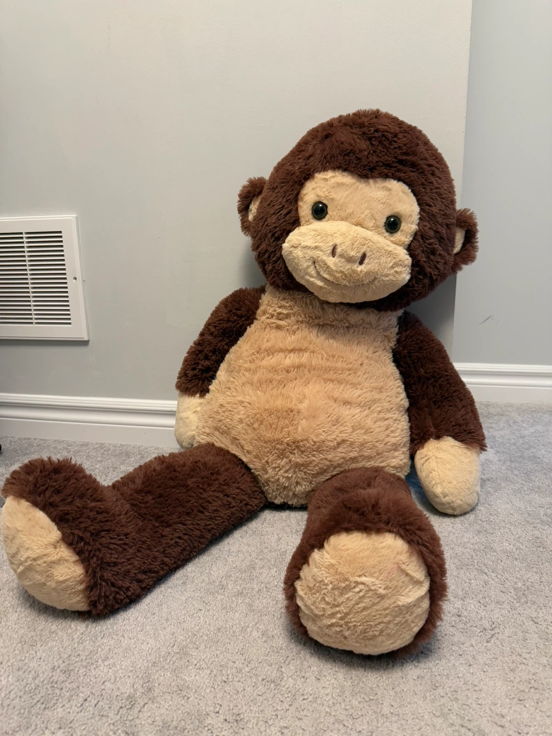 Selling a large and cuddly plush monkey stuffed animal! It's in great condition and ready for a new home. Perfect for kids or anyone who loves a soft, huggable friend. This monkey is sure to bring a smile to your face