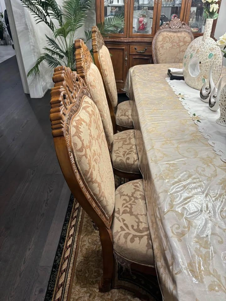 Elevate your home with this stunning, grand dining ensemble. Perfect for hosting memorable holiday dinners or large family gatherings, this set combines timeless European-inspired craftsmanship with incredible durability.