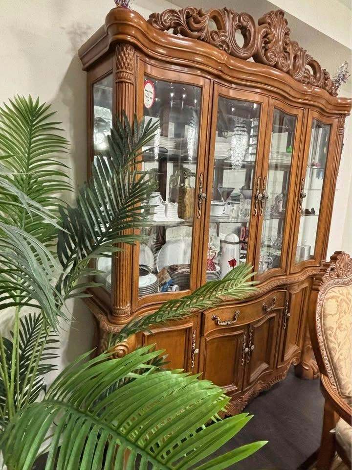 Included: 1 Large Dining Table + 8 Matching Chairs including Hutch.