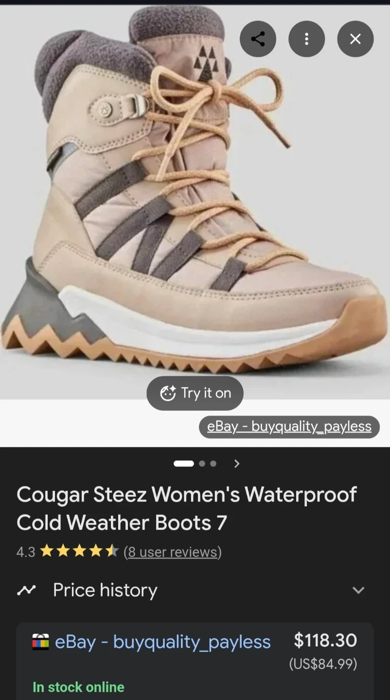 Cougar Steez women's waterproof cold weather boots in size 10. These insulated boots are designed for warmth and protection in chilly conditions. They feature a durable construction with a waterproof exterior and a comfortable, grippy sole.