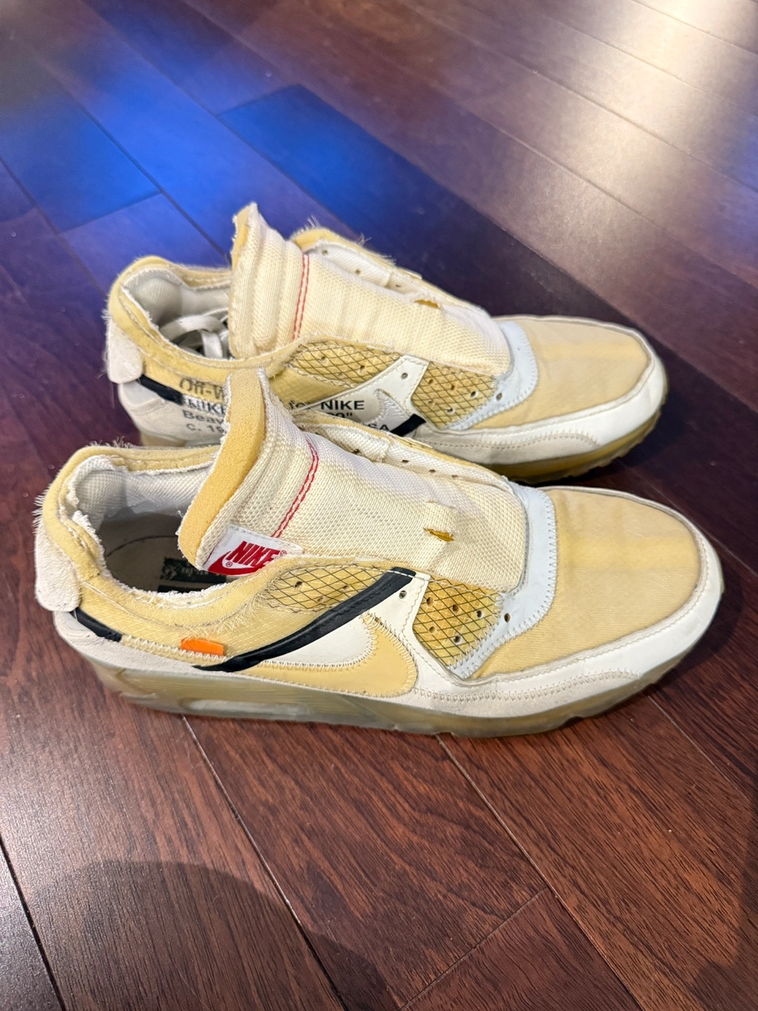 Pre-owned Off-White x Nike Air Max 90 sneakers. Cream colourway. Show some wear.