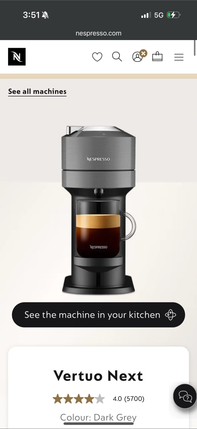 This Nespresso Vertuo Next coffee machine is in a sleek dark grey colour. It's perfect for making your morning coffee. Get yours today!