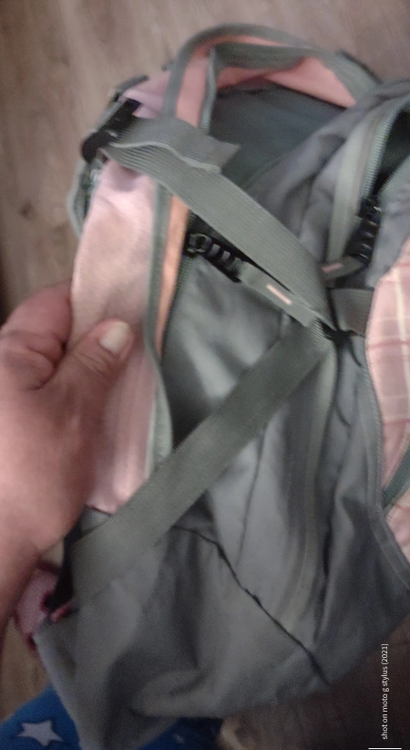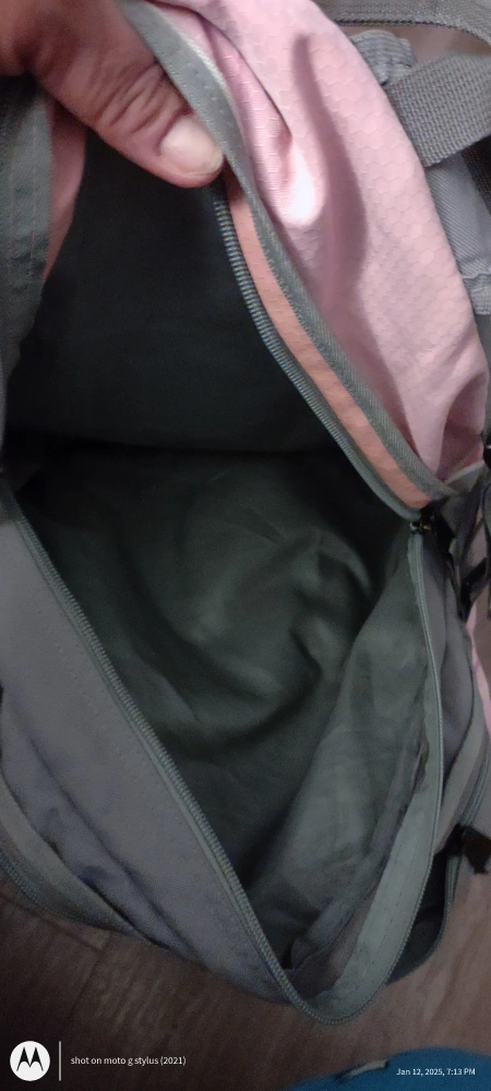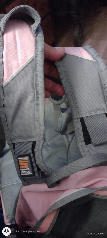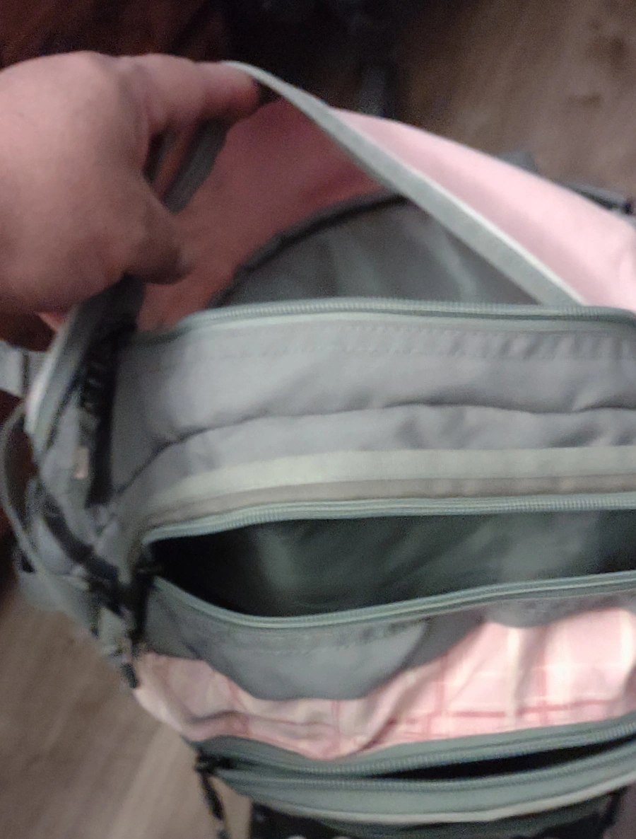 Back to school pink and gray backpack. Multiple compartments and zippers some wear but other wise in good condition big size