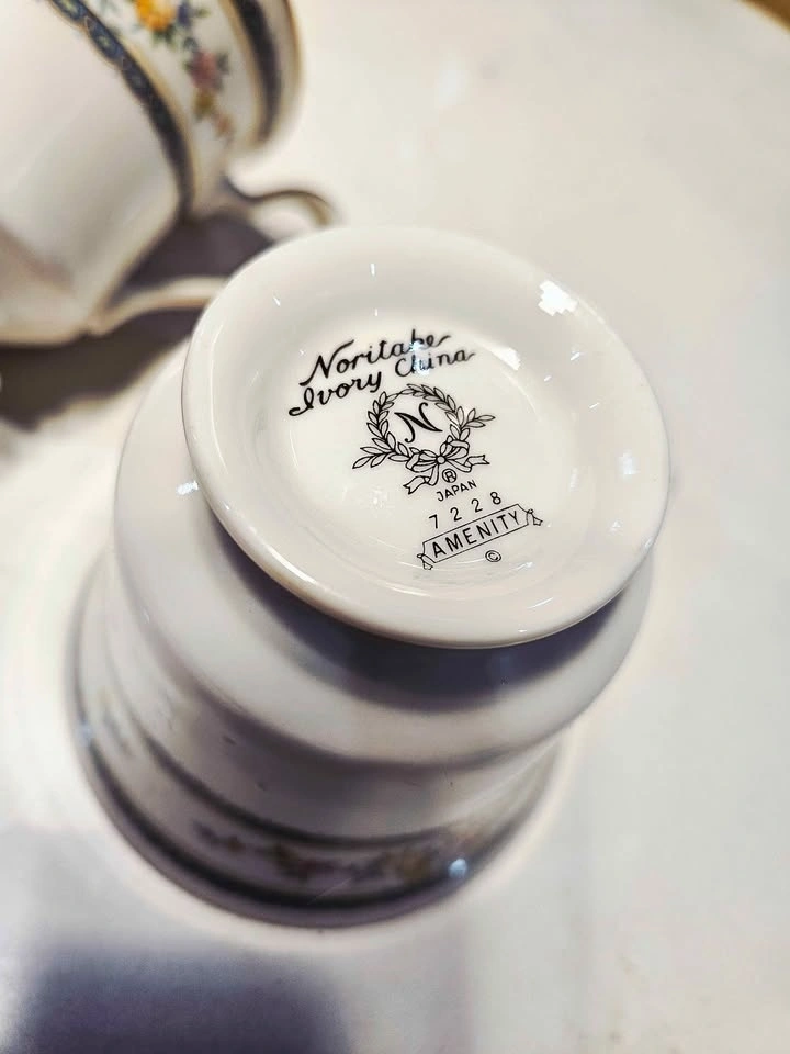 Pair of vintage Noritake Ivory China cups in the beautiful "Amenity" pattern. Perfect for daily elegant use.