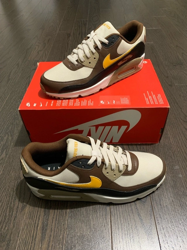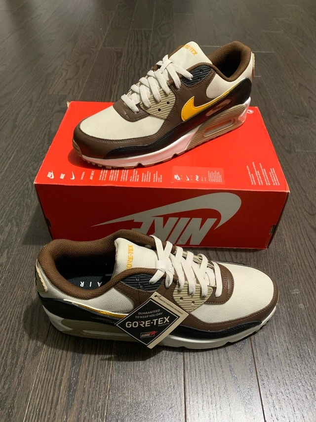Brand new Nike Air Max 90 Goretex in Cacao Wow. Available sizes: Men's 9.5 and 10. These are waterproof and guaranteed to keep you dry! Box lid is missing.