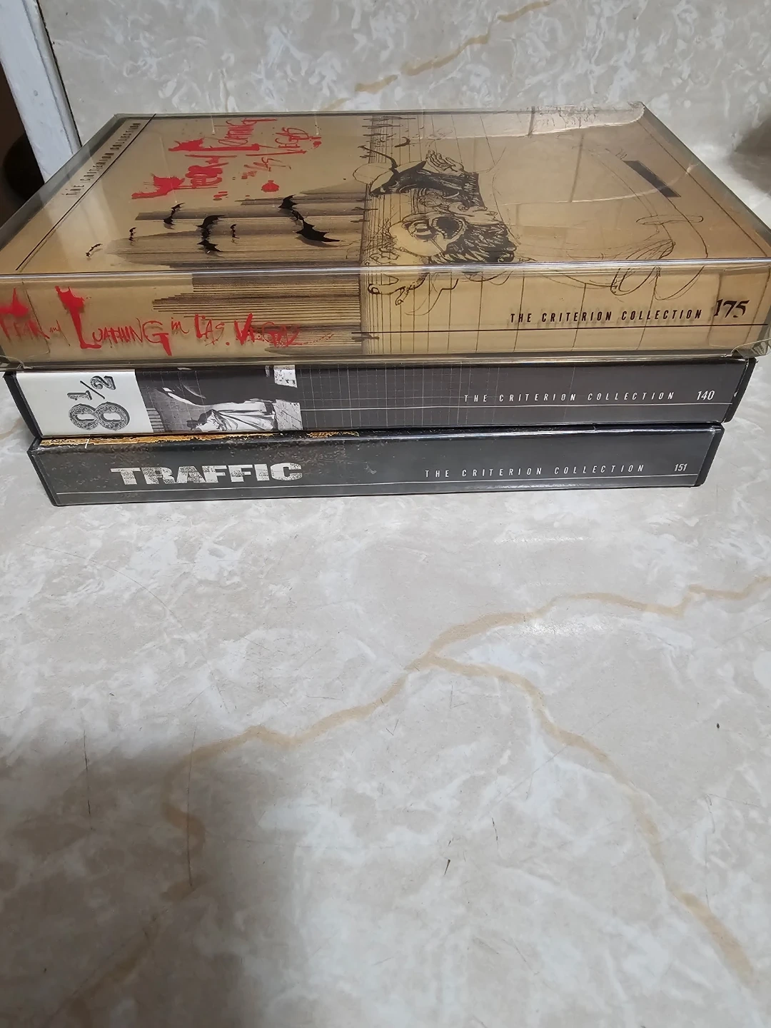 Three Blu-ray films from The Criterion Collection: Fear and Loathing in Las Vegas (175), 8 Diagrams (140), and Traffic (151). These are standard Blu-ray releases. This collection is for film enthusiasts.