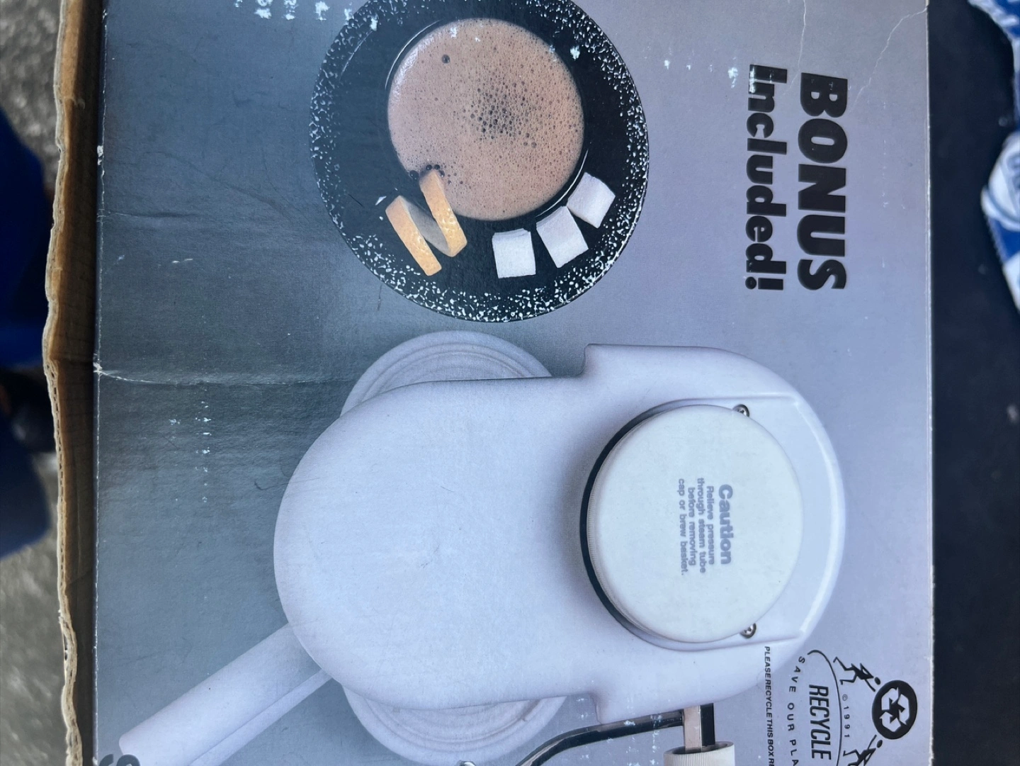 Selling a Salton Cappuccino Expres II, a 4-cup cappuccino and espresso maker. It's a precision European coffeemaker that comes with its own easy-to-follow video manual on VHS!