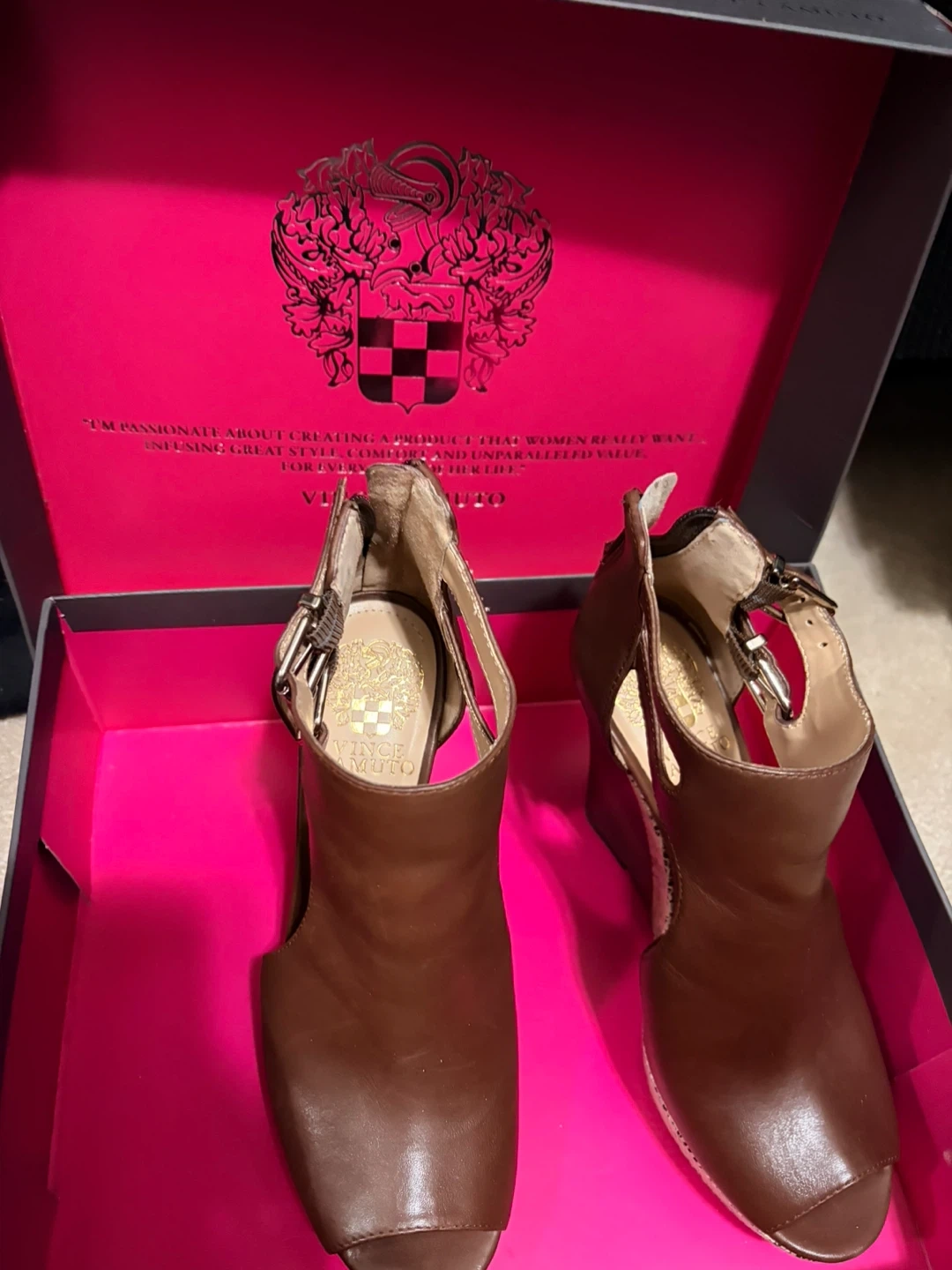 Women’s Vince Camuto Whitnee dark walnut wedge sandles- size 6.5