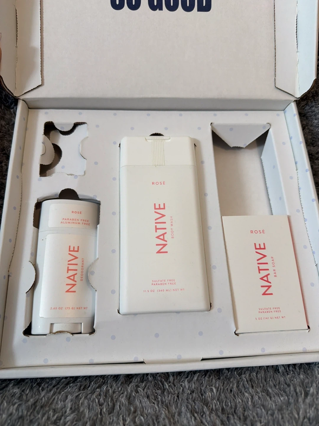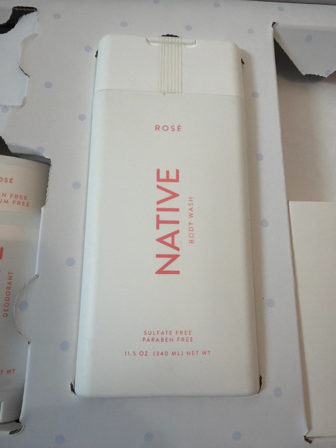 This Native gift set features rose-scented body wash, deodorant, and bar soap. The body wash is 11.5 OZ (340 ML) and is sulfate and paraben free. The deodorant is 2.65 OZ (75 G) and is aluminum and paraben free. It's a great way to try out multiple Native products!