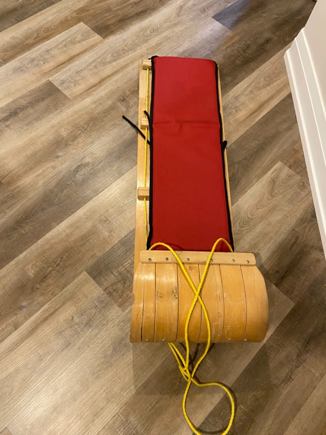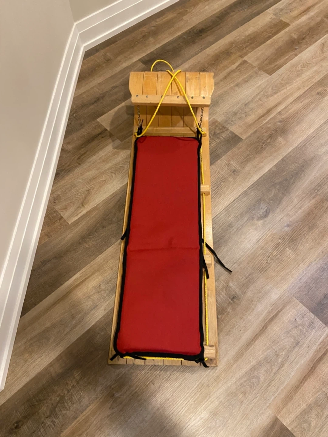 🏆Wooden Toboggan with Red Padded Seat