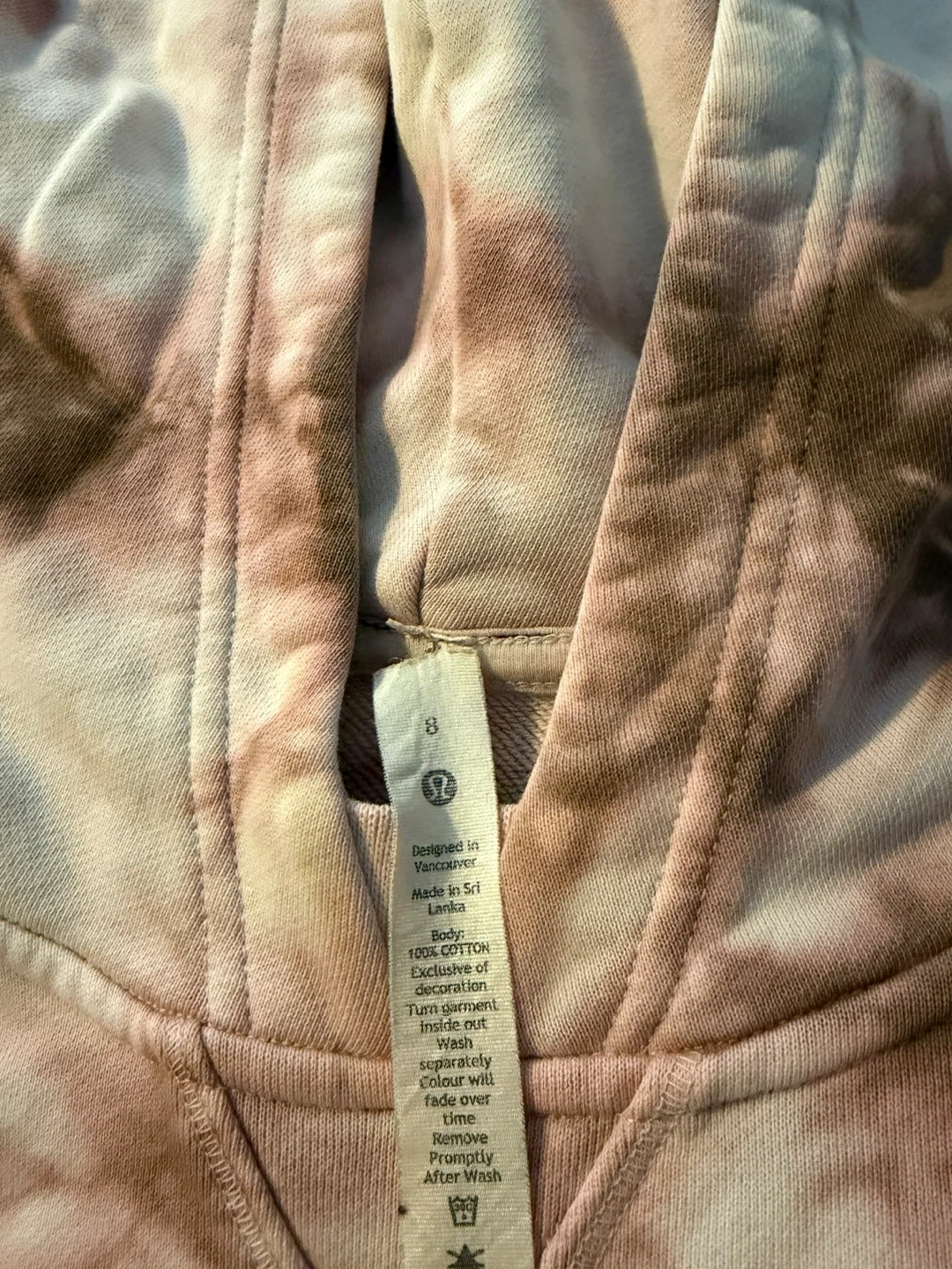 Selling a Lululemon hoodie in a tie-dye pattern! It's a size 8 and made of 100% cotton. The hoodie is in great condition and ready for a new owner