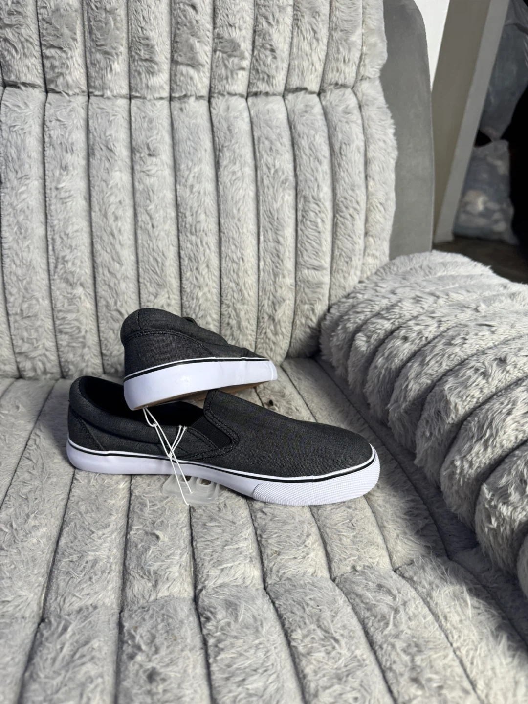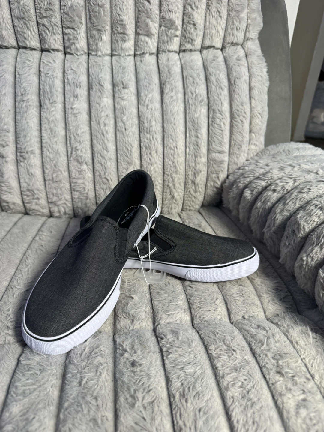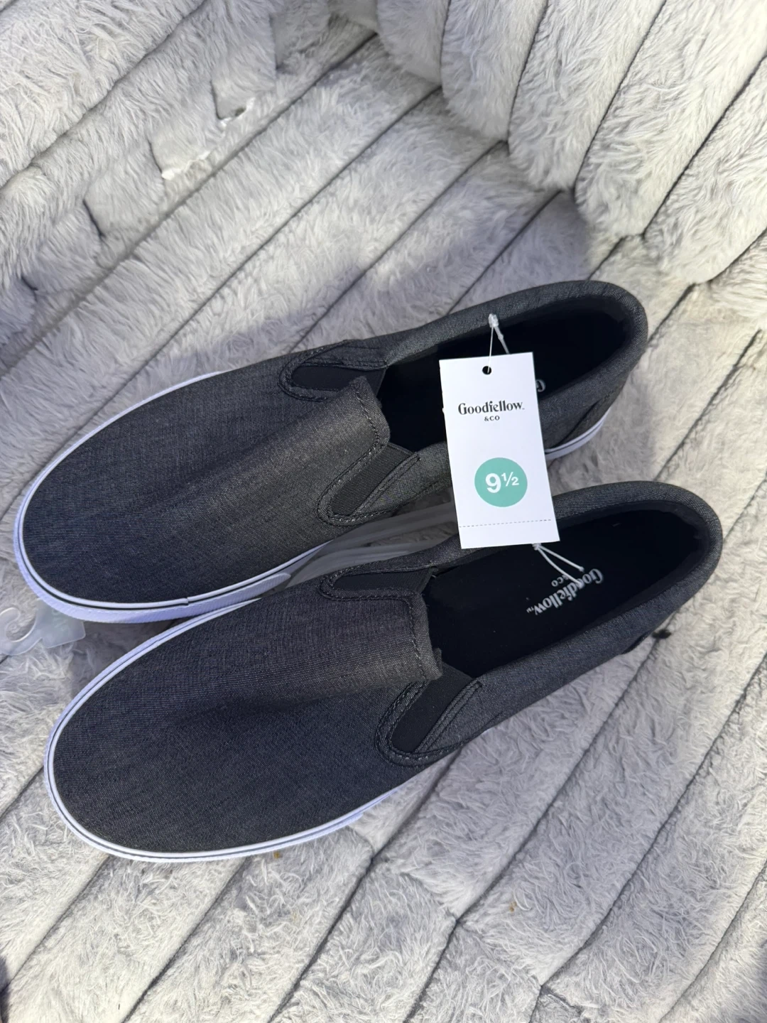Men's slip-on sneakers from Goodfellow & Co. Charcoal gray color. Size 9.5. Canvas upper with rubber sole. These are new without tags, but have the original hang tag.