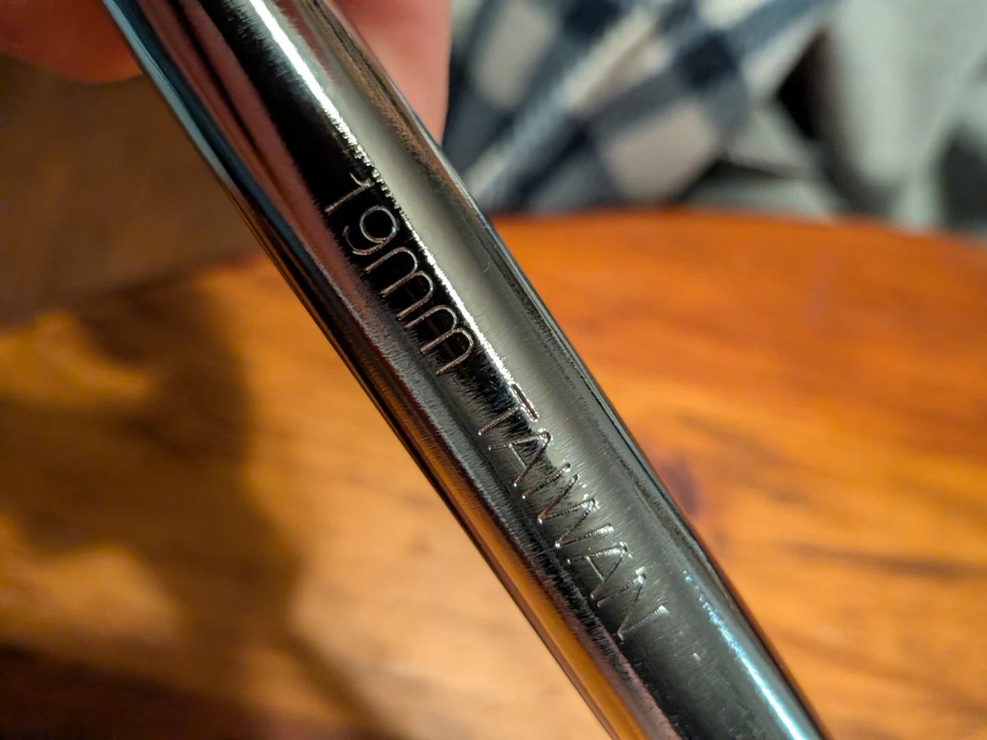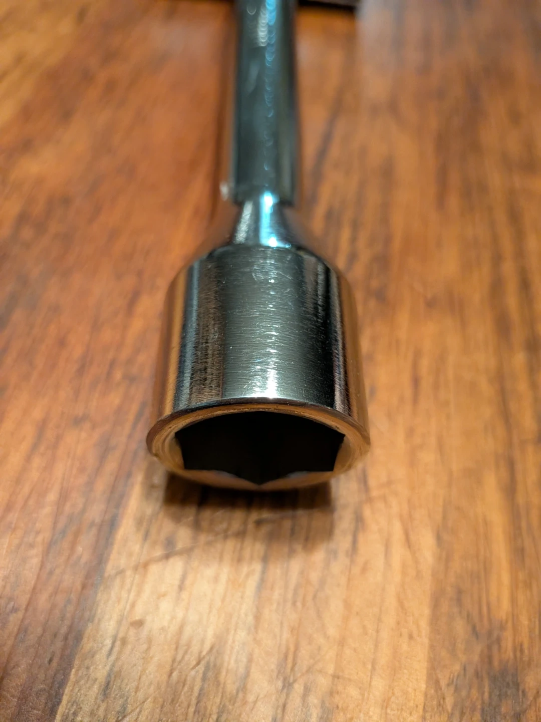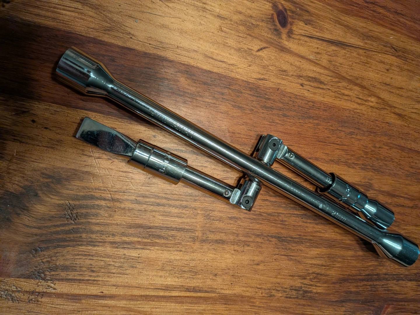 Selling a MotoMaster folding 4-way wheel wrench. It's a 14" wrench that fits 17, 19, and 21 mm nuts. Also works as a pry bar!