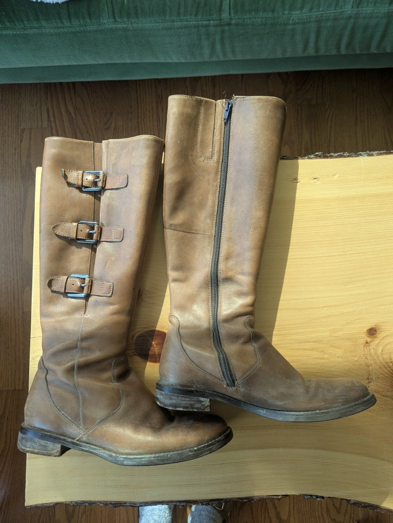 Size 8 Ecco brown leather riding boots. Soles need to be replaced. Pick up only.