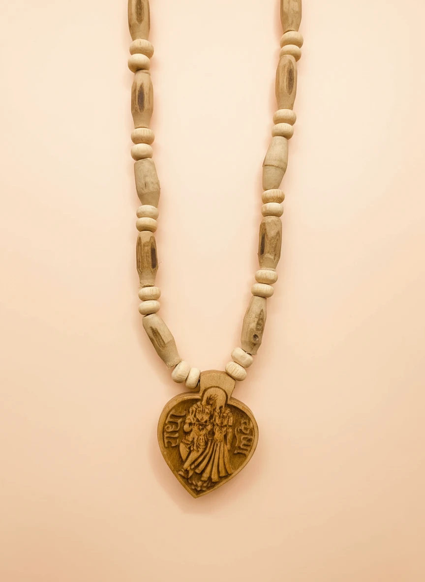 Engraved Shree Radha Krishna Pendant in Tulsi Mala Kanthi