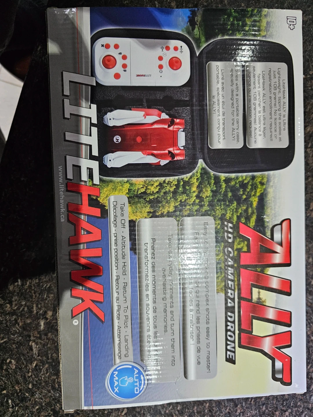 Selling a brand new LiteHawk ALLY HD Camera Drone, still in its original box! It's ready for take-off with features like altitude hold and return to pilot landing. Perfect for capturing those everyday moments and turning them into everlasting memories. Comes with a portable carry case, specially designed for the ALLY!