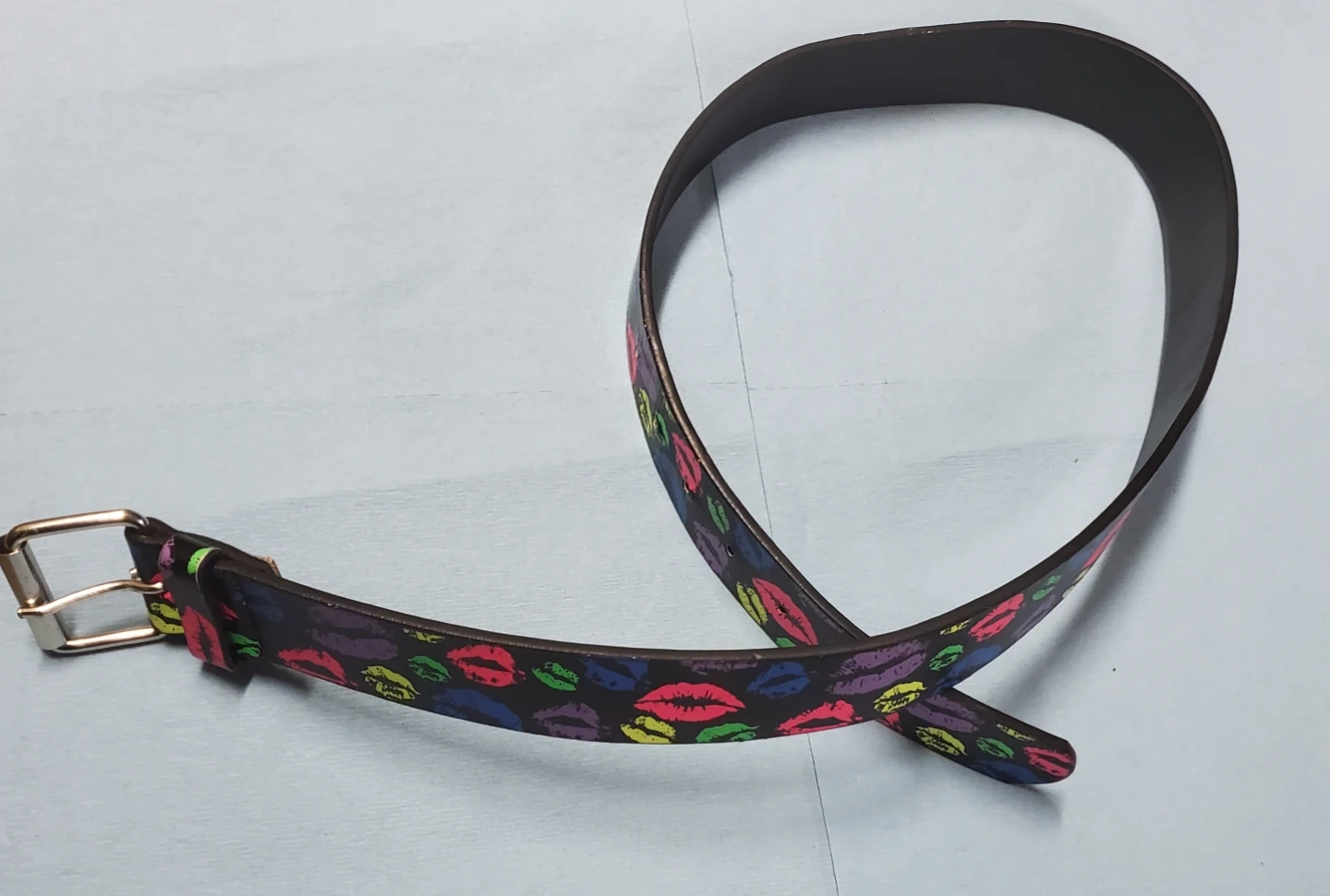 Belt with colourful kiss print