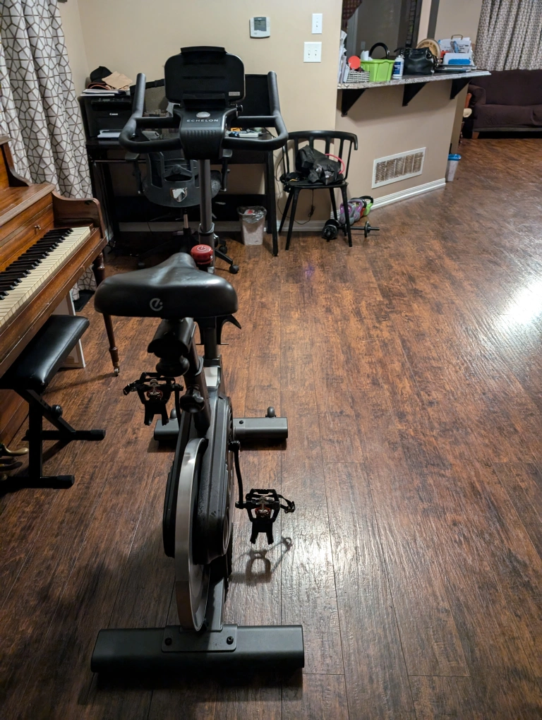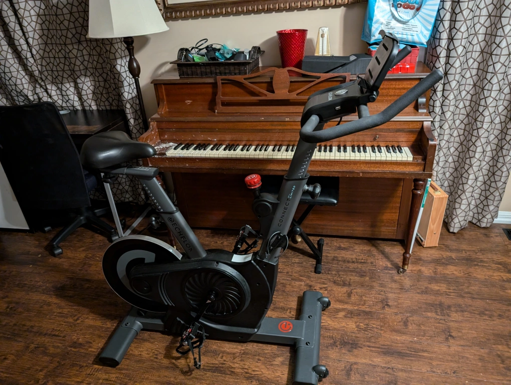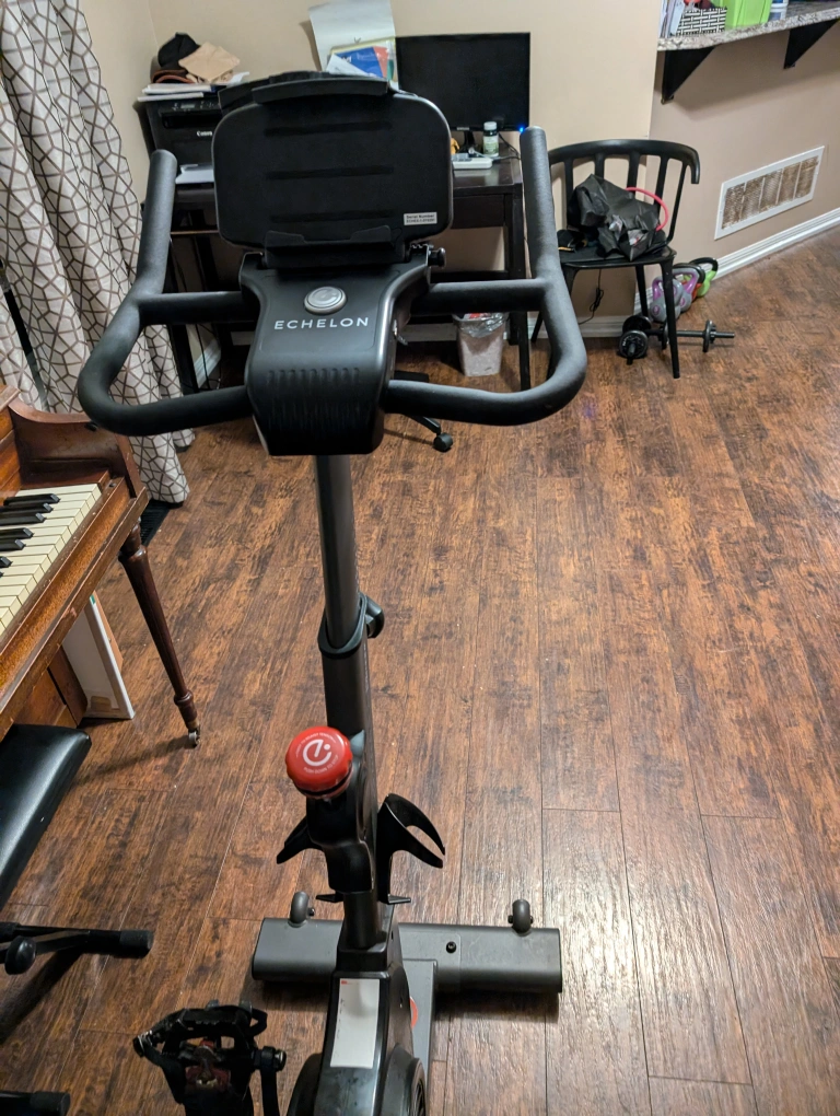 Echelon Ex-3 Connect Bike. This is a great bike for home workouts! Can be controlled with an app on your phone Comes with a device holder