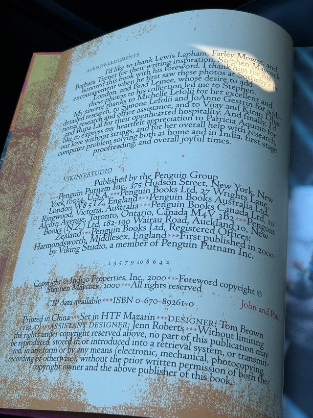 Rare opportunity to acquire The Beatles in Rishikesh by Paul Saltzman, a book of photographs documenting the band's experiences in the ashram. This is a hardcover, first edition, first printing from Viking Studio, New York, 2000. It features 75 original, previously unpublished photographs of John, Paul, George, and Ringo, along with the author's personal anecdotes and first-person accounts of encounters with notable figures of the 1960s who visited the ashram, such as Mia Farrow, Donovan, and Mike Love. Condition is Used - Like new. For Sale By: Owner.