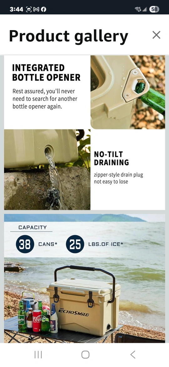 60Keep your drinks and snacks cool with this EchoSmile insulated portable cooler! It has a 25-quart capacity and features a sealing ring for 5-day ice retention. Perfect for BBQs, beach trips, camping, and picnics. It can hold 38 cans or 25 lbs of ice. Also includes an integrated bottle opener and a no-tilt draining system please look at my other ADS in Kitchener. Never used. Will fit in a canoe or kayak?And keep your stuff cold