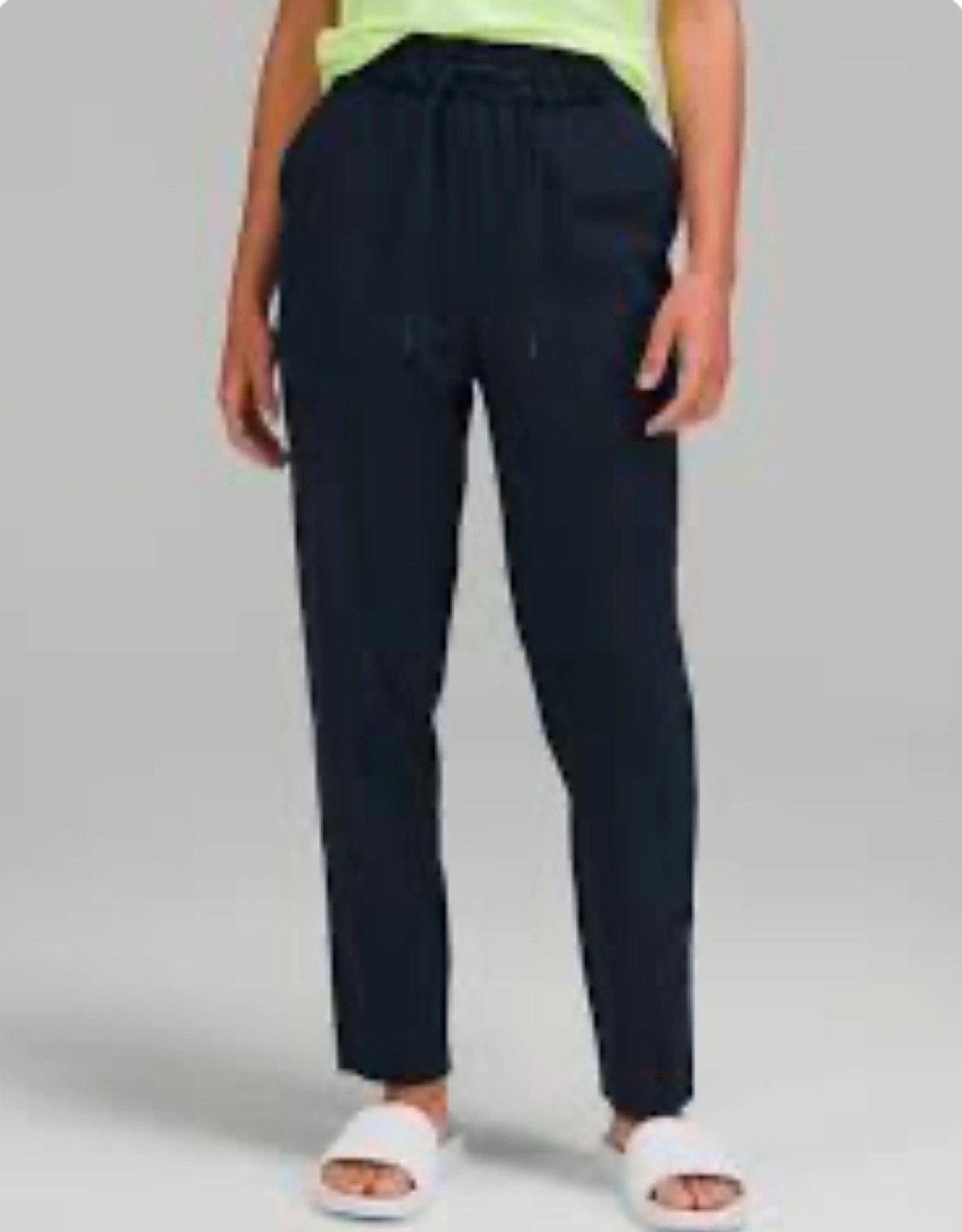 Navy blue Lululemon ABC Pant with an elastic waistband and a drawstring. Two pockets on the front and two on the back. In great condition. Size 10