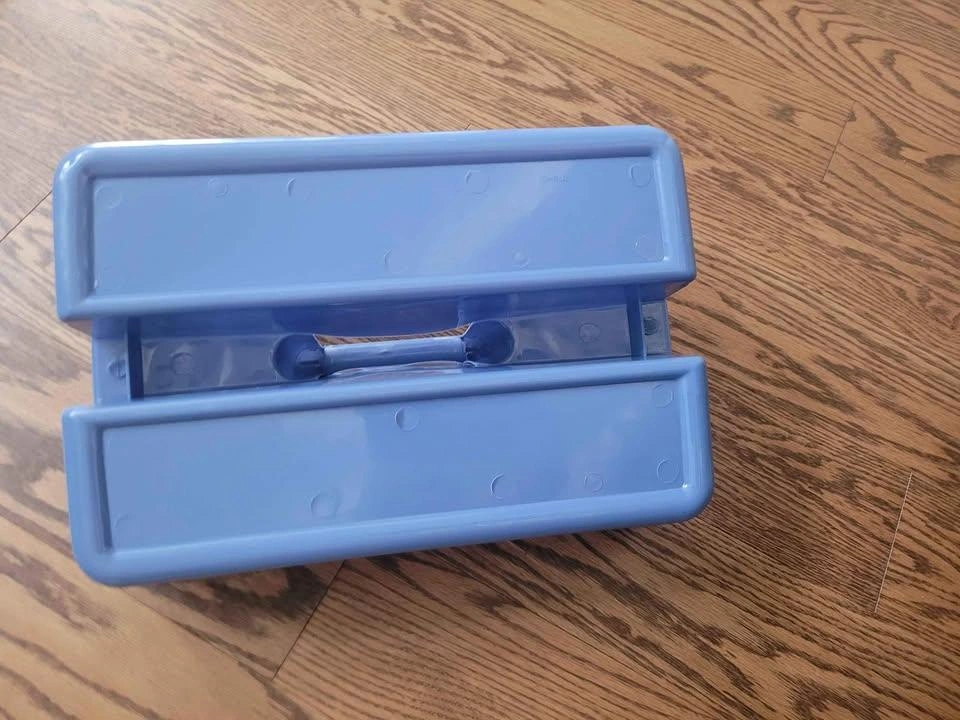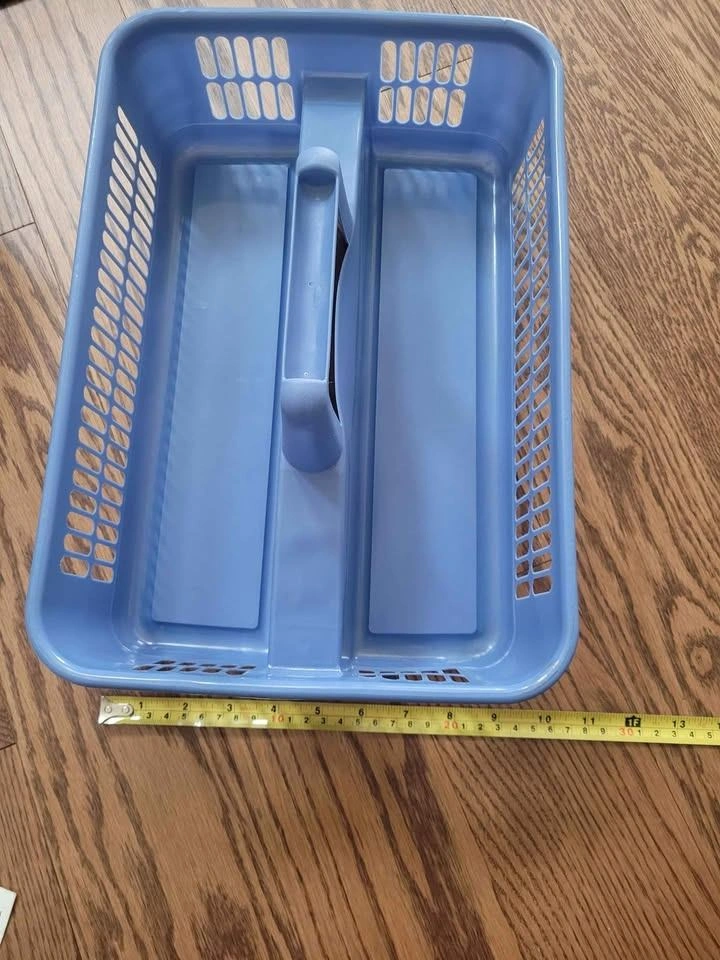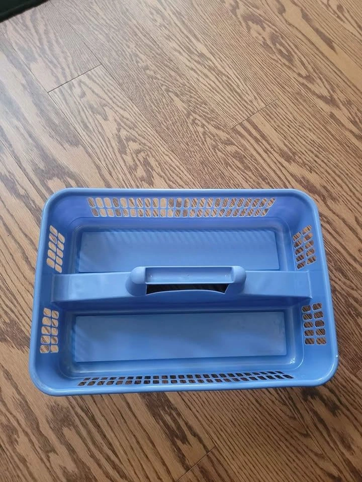 Here's a handy blue plastic storage caddy! It's in great shape and ready to help you organize your space. Perfect for carrying cleaning supplies, art supplies, or anything else you need to keep tidy