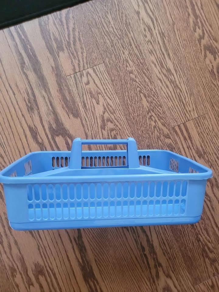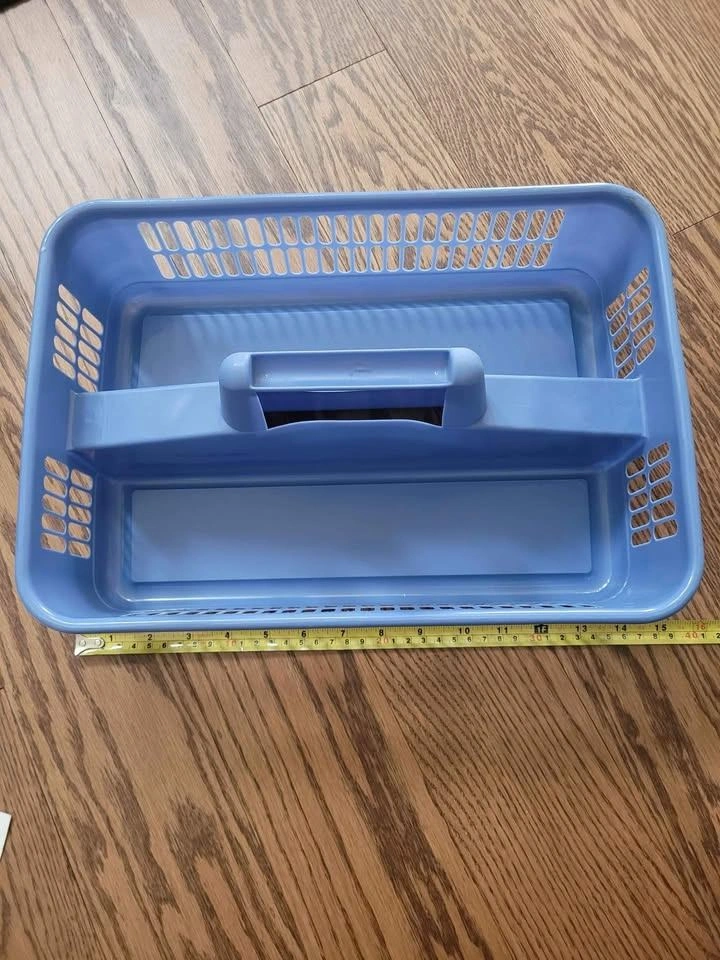 Here's a handy blue plastic storage caddy! It's in great shape and ready to help you organize your space. Perfect for carrying cleaning supplies, art supplies, or anything else you need to keep tidy