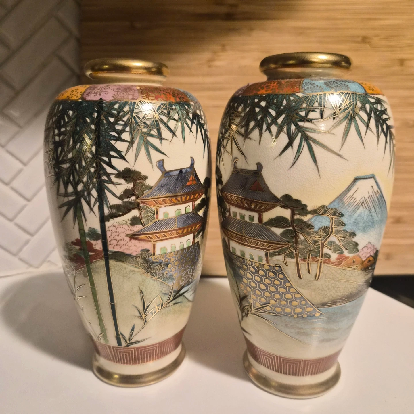 VIntage Japanese Satsuma vase, likely from the mid-20th century, featuring a crackle glaze and an export mark.