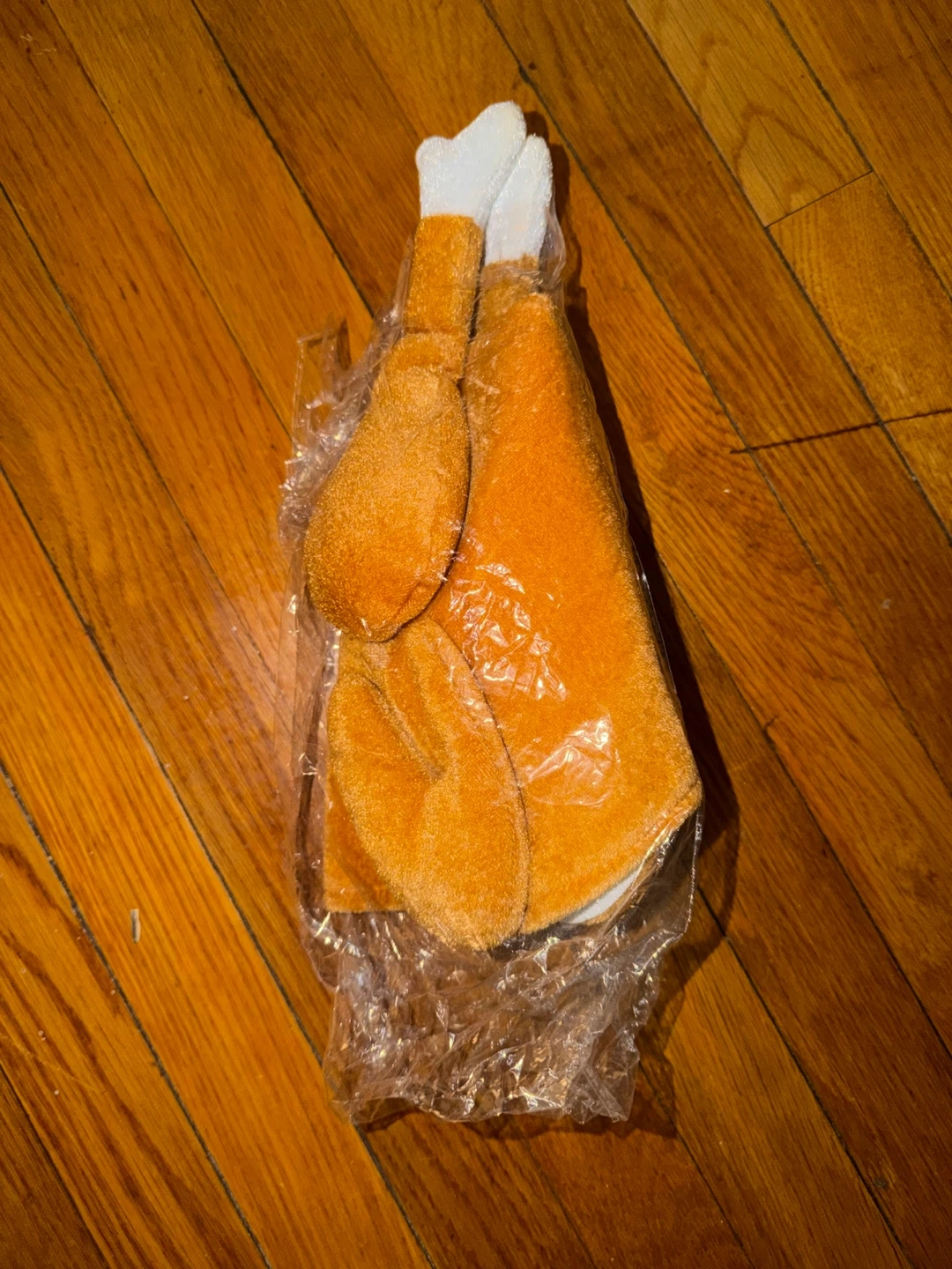 This novelty hat is designed to look like a roasted turkey. It's a fun costume accessory! It's made of plush material and fits most adults.