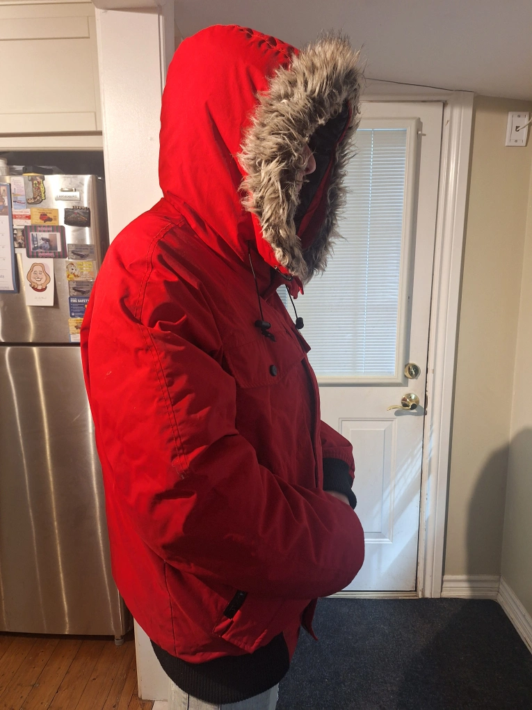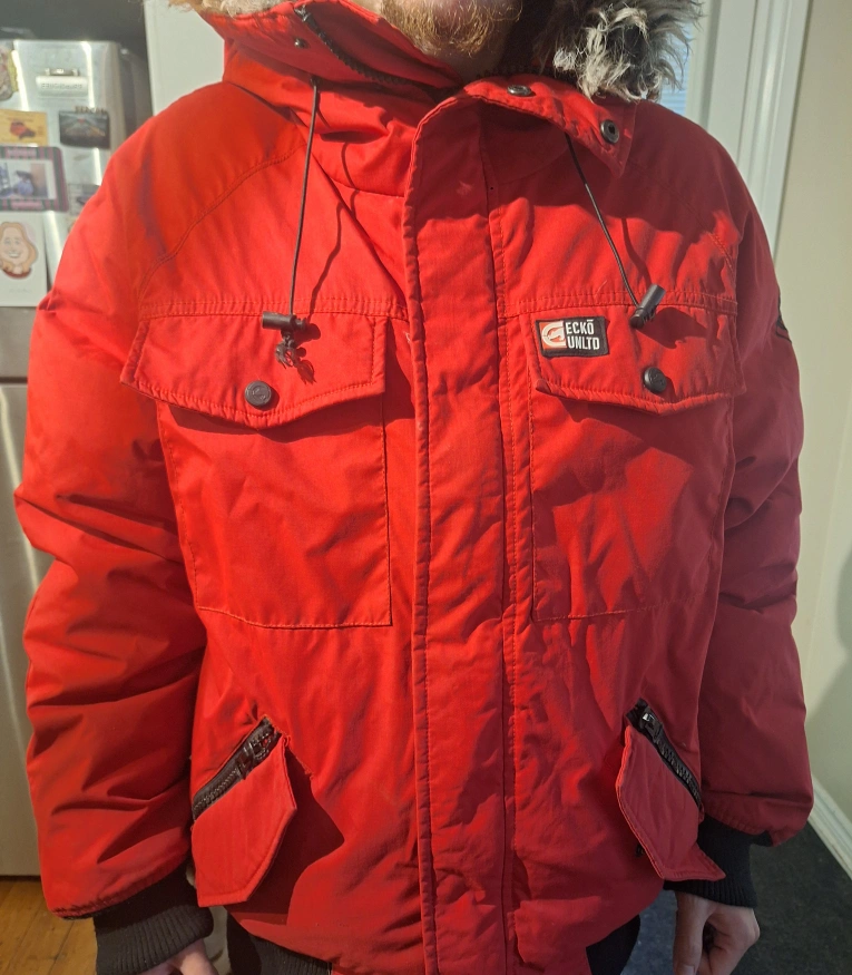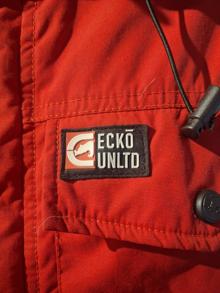 Selling a red winter jacket from Ecko Unltd! It has a faux fur hood and lots of pockets. Great for staying warm this winter season!